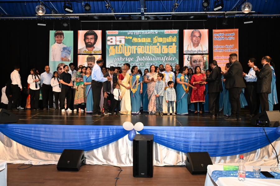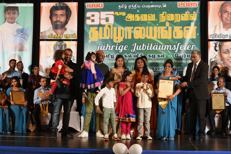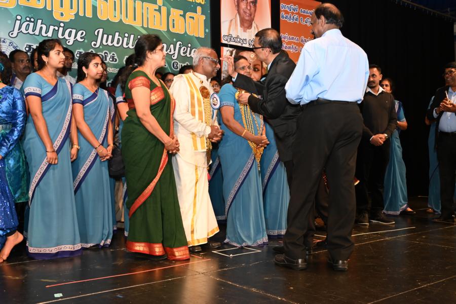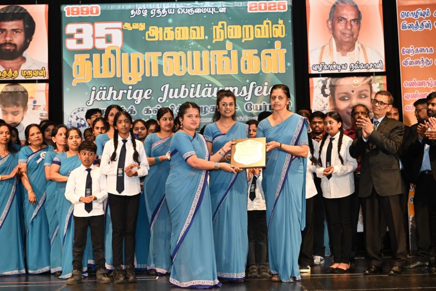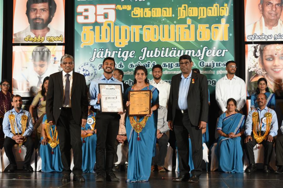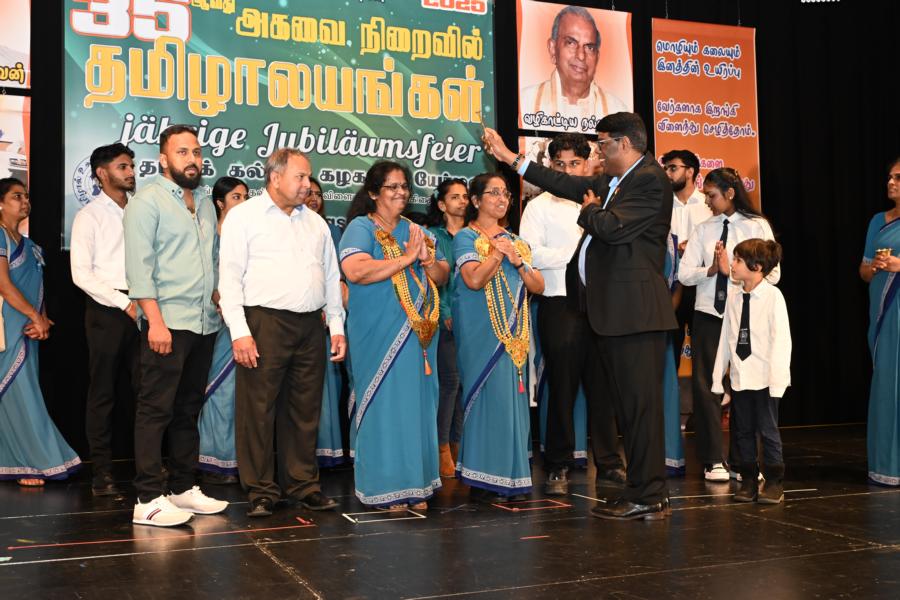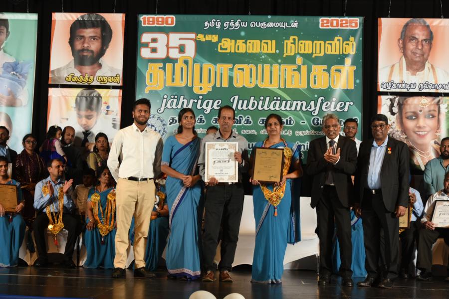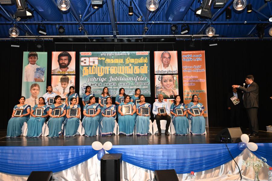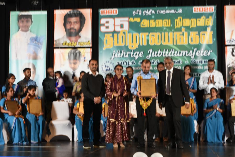 யூச்சன் தமிழாலய நிர்வாகி தமிழ்மாணி திரு. தம்பையா சிவலிங்கம், கிறீபெல்ட் தமிழாலய நிர்வாகி தமிழ்மாணி திருமதி யஸ்ரின் உதயதேவி, கிறீபெல்ட், நெற்றெற்றால், வியர்சன் ஆகிய தமிழாலயங்களின் ஆசிரியர் தமிழ்மாணி திரு. ஆலாலசுந்தரம் ஞானகுமார், வூப்பெற்றால் தமிழாலய ஆசிரியர் தமிழ்மாணி திருமதி தெய்வறஞ்சனி கிருதரமூர்த்தி மற்றும் வூப்பெற்றால் தமிழாலய ஆசிரியர் தமிழ்மாணி திரு. செபஸ்ரியான் றொமாலியஸ் ஸ்ரீபன் ஆகியோருக்கு 30 ஆண்டுகள் பணிநிறைவுக்கான மதிப்பளிப்பும், கைன்ஸ்பேர்க் தமிழாலயத்தின் நிர்வாகியும் ஆசிரியரும் மற்றும் யூச்சன் தமிழாலயத்தின் ஆசிரியருமான தமிழ்மாணி திரு. திசைவீரசிங்கம் புஸ்பராசா அவர்களுக்கு 35 ஆண்டுகள் பணிநிறைவு மதிப்பளிப்பும் வழங்கப்பட்டன.