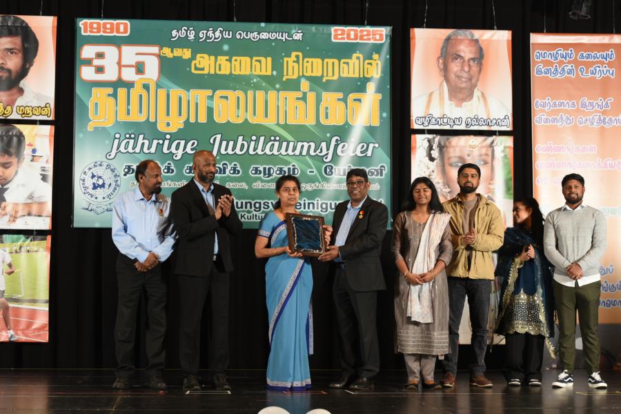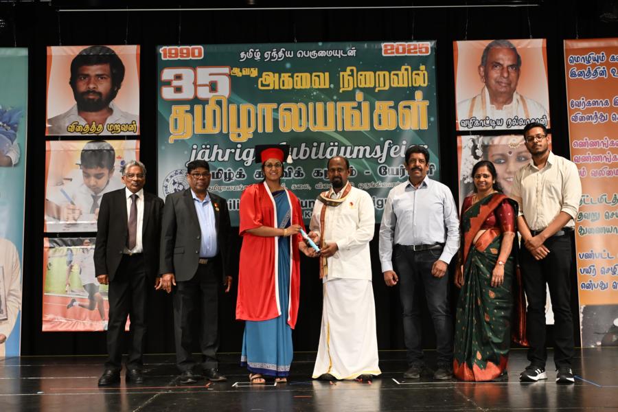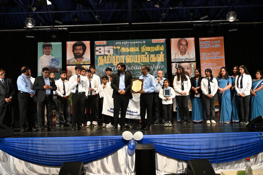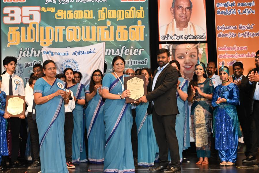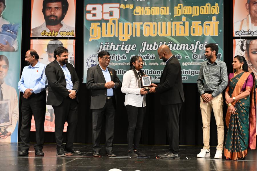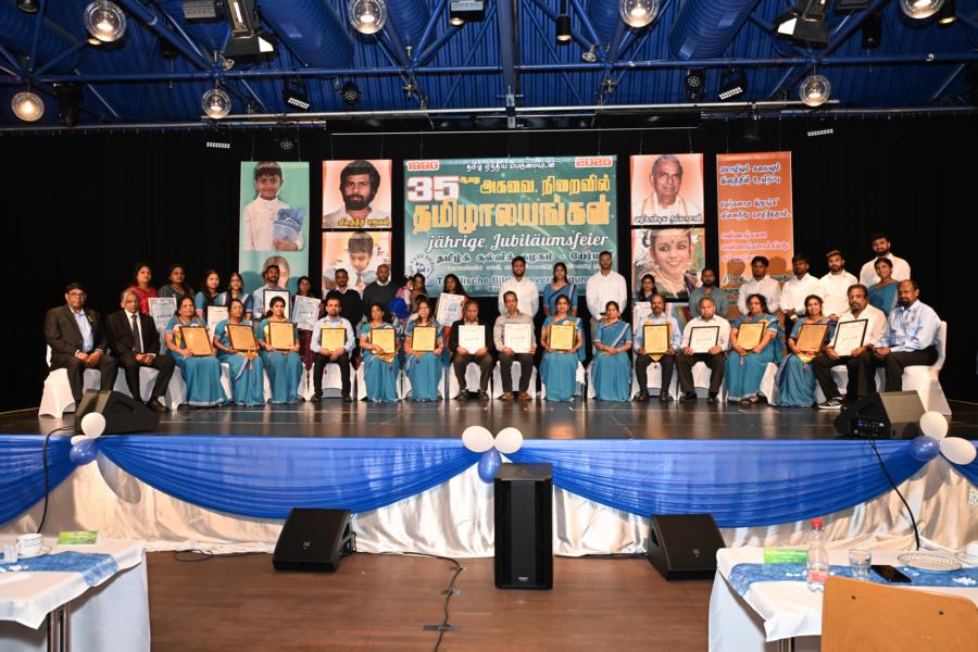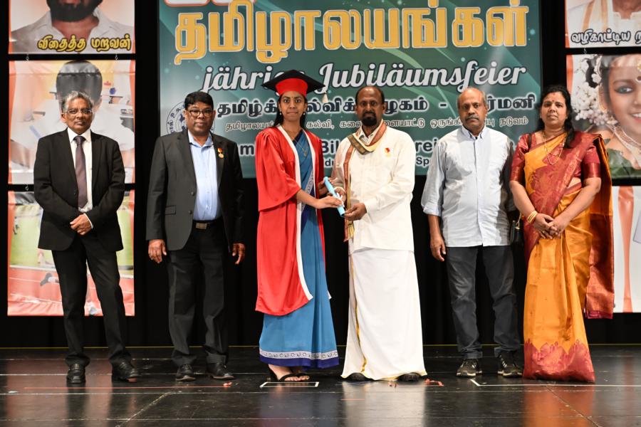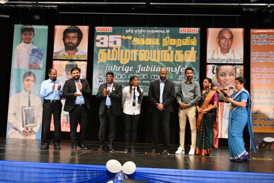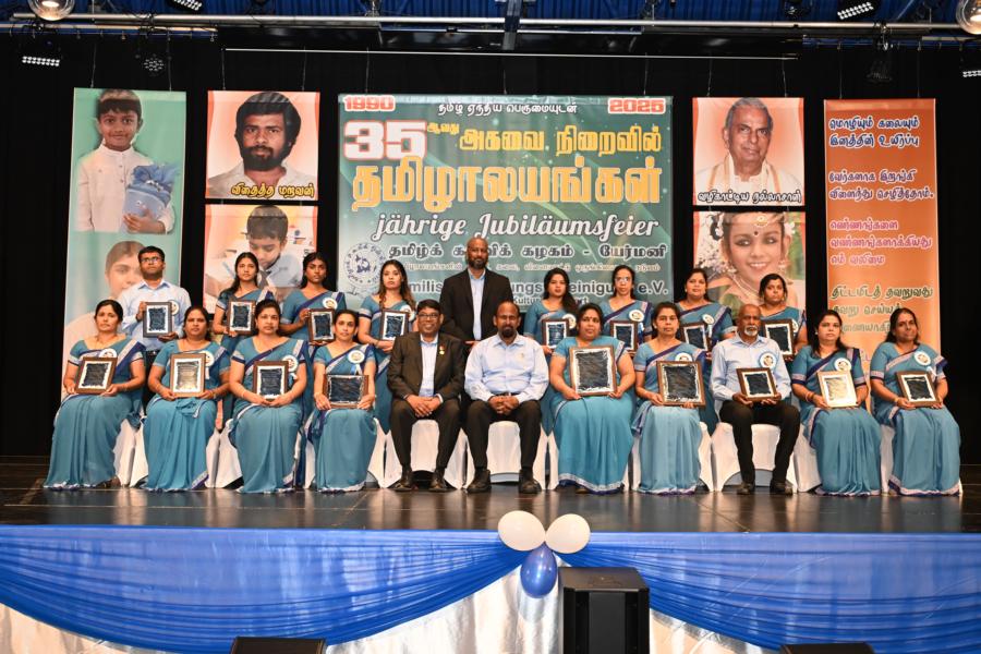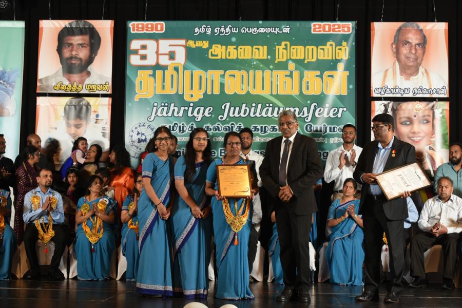 யூச்சன் தமிழாலய நிர்வாகி தமிழ்மாணி திரு. தம்பையா சிவலிங்கம், கிறீபெல்ட் தமிழாலய நிர்வாகி தமிழ்மாணி திருமதி யஸ்ரின் உதயதேவி, கிறீபெல்ட், நெற்றெற்றால், வியர்சன் ஆகிய தமிழாலயங்களின் ஆசிரியர் தமிழ்மாணி திரு. ஆலாலசுந்தரம் ஞானகுமார், வூப்பெற்றால் தமிழாலய ஆசிரியர் தமிழ்மாணி திருமதி தெய்வறஞ்சனி கிருதரமூர்த்தி மற்றும் வூப்பெற்றால் தமிழாலய ஆசிரியர் தமிழ்மாணி திரு. செபஸ்ரியான் றொமாலியஸ் ஸ்ரீபன் ஆகியோருக்கு 30 ஆண்டுகள் பணிநிறைவுக்கான மதிப்பளிப்பும், கைன்ஸ்பேர்க் தமிழாலயத்தின் நிர்வாகியும் ஆசிரியரும் மற்றும் யூச்சன் தமிழாலயத்தின் ஆசிரியருமான தமிழ்மாணி திரு. திசைவீரசிங்கம் புஸ்பராசா அவர்களுக்கு 35 ஆண்டுகள் பணிநிறைவு மதிப்பளிப்பும் வழங்கப்பட்டன.