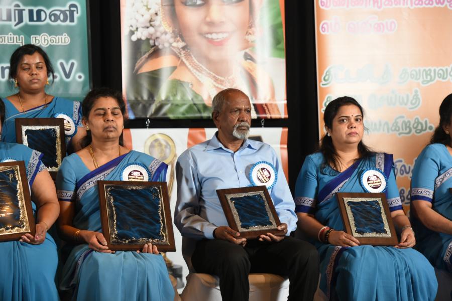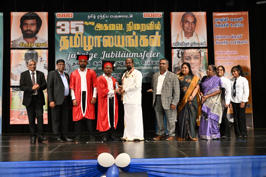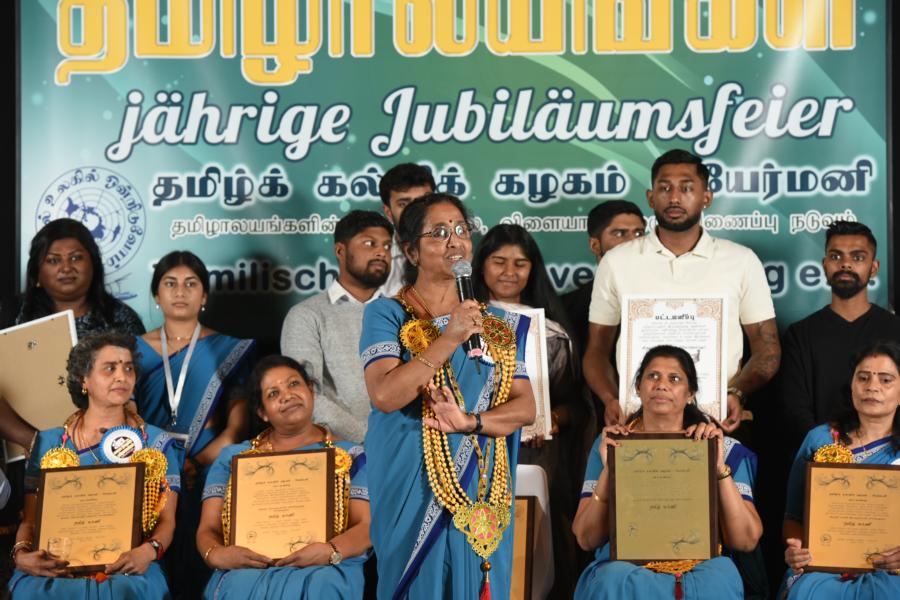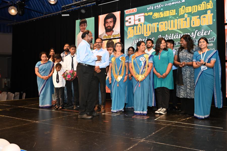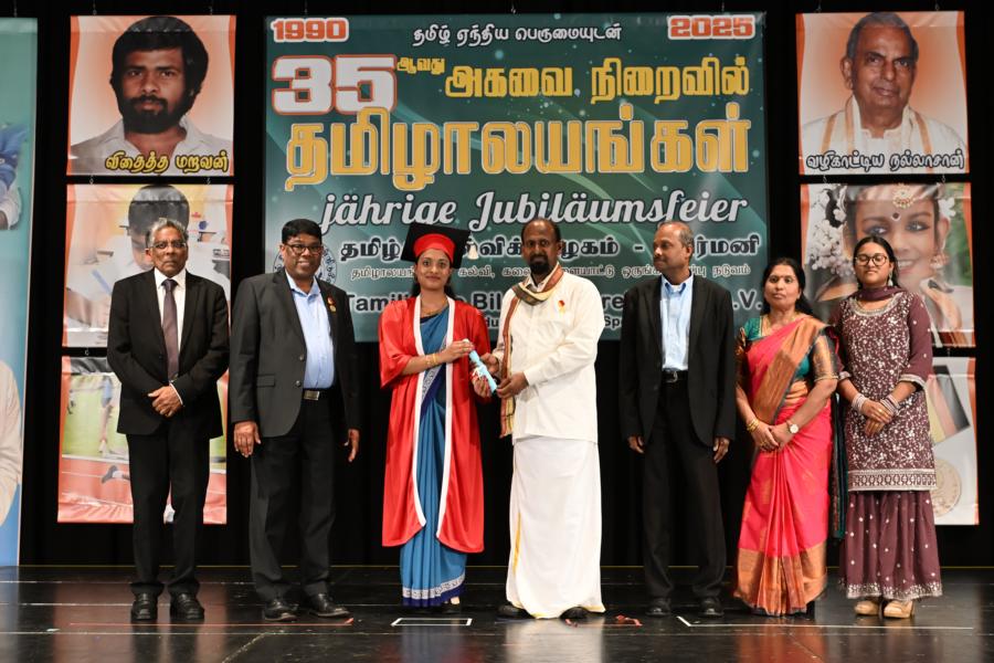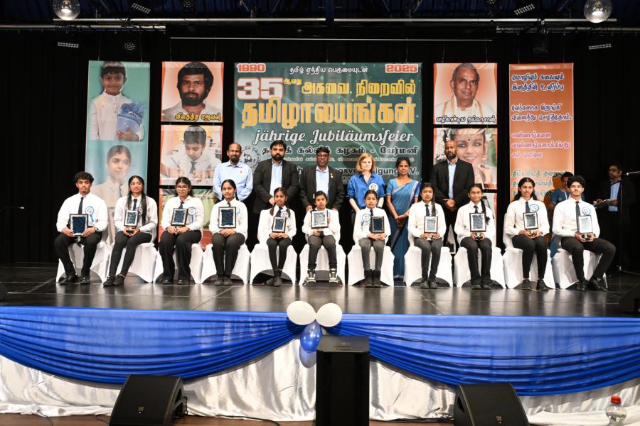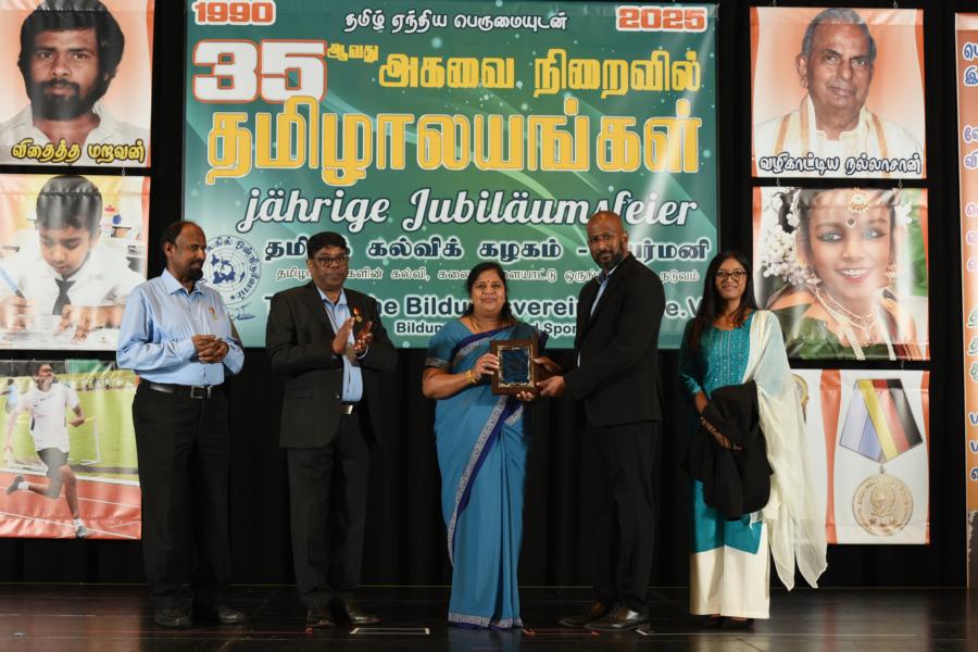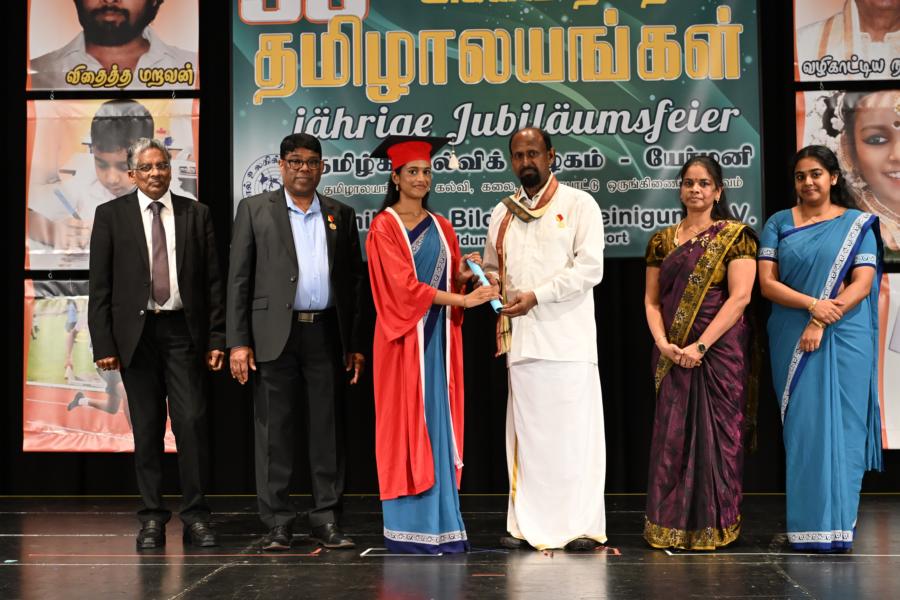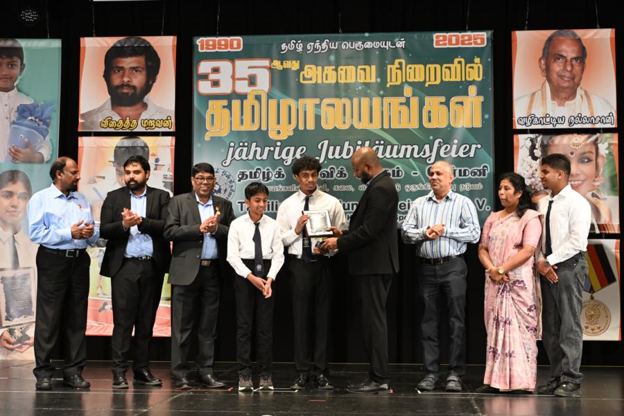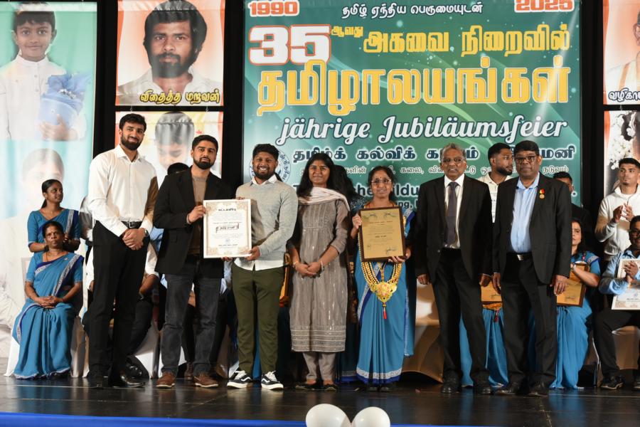 யூச்சன் தமிழாலய நிர்வாகி தமிழ்மாணி திரு. தம்பையா சிவலிங்கம், கிறீபெல்ட் தமிழாலய நிர்வாகி தமிழ்மாணி திருமதி யஸ்ரின் உதயதேவி, கிறீபெல்ட், நெற்றெற்றால், வியர்சன் ஆகிய தமிழாலயங்களின் ஆசிரியர் தமிழ்மாணி திரு. ஆலாலசுந்தரம் ஞானகுமார், வூப்பெற்றால் தமிழாலய ஆசிரியர் தமிழ்மாணி திருமதி தெய்வறஞ்சனி கிருதரமூர்த்தி மற்றும் வூப்பெற்றால் தமிழாலய ஆசிரியர் தமிழ்மாணி திரு. செபஸ்ரியான் றொமாலியஸ் ஸ்ரீபன் ஆகியோருக்கு 30 ஆண்டுகள் பணிநிறைவுக்கான மதிப்பளிப்பும், கைன்ஸ்பேர்க் தமிழாலயத்தின் நிர்வாகியும் ஆசிரியரும் மற்றும் யூச்சன் தமிழாலயத்தின் ஆசிரியருமான தமிழ்மாணி திரு. திசைவீரசிங்கம் புஸ்பராசா அவர்களுக்கு 35 ஆண்டுகள் பணிநிறைவு மதிப்பளிப்பும் வழங்கப்பட்டன.