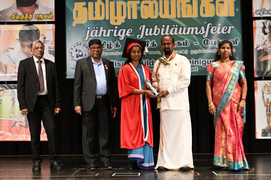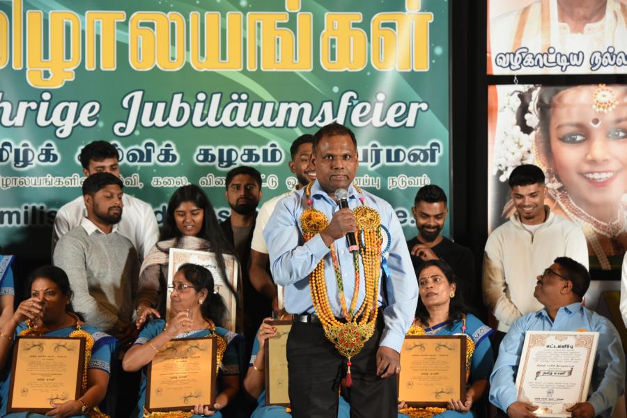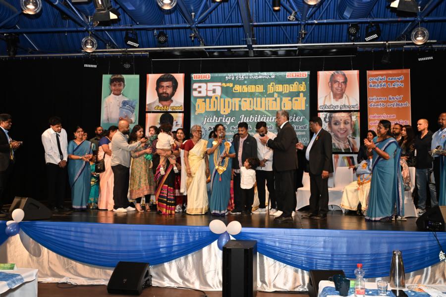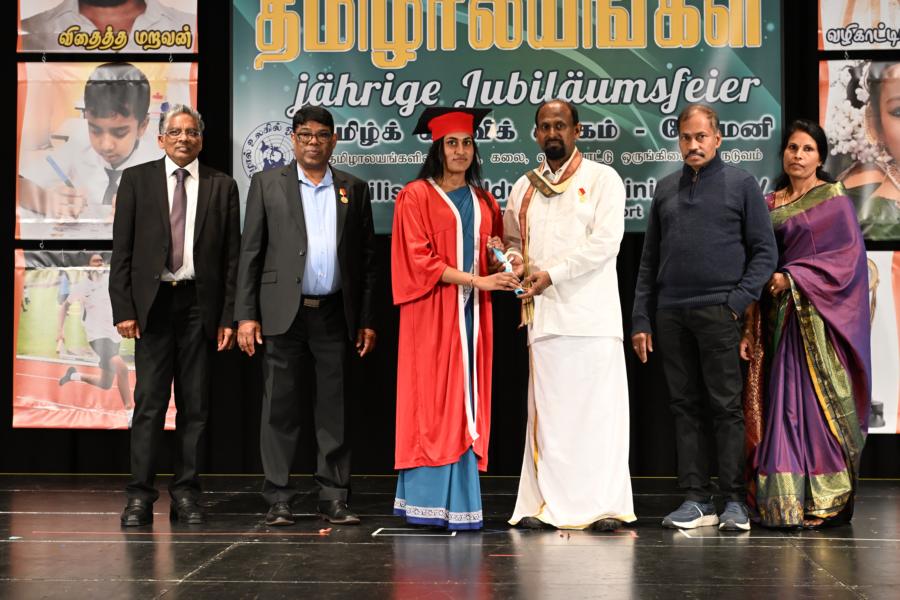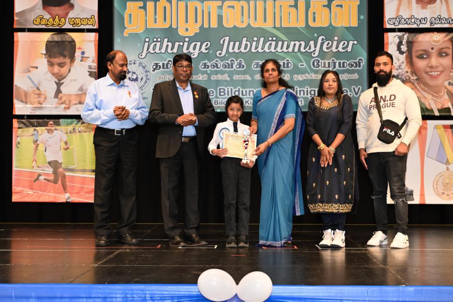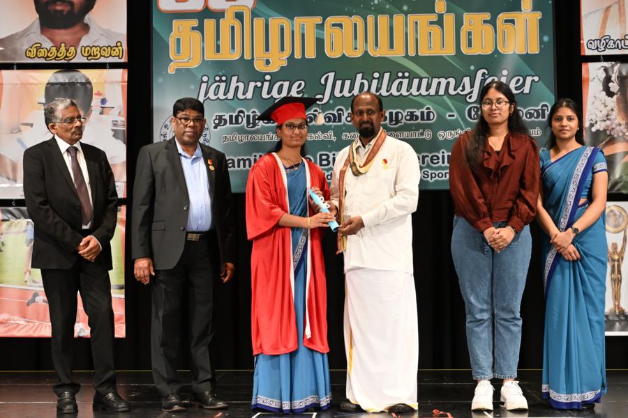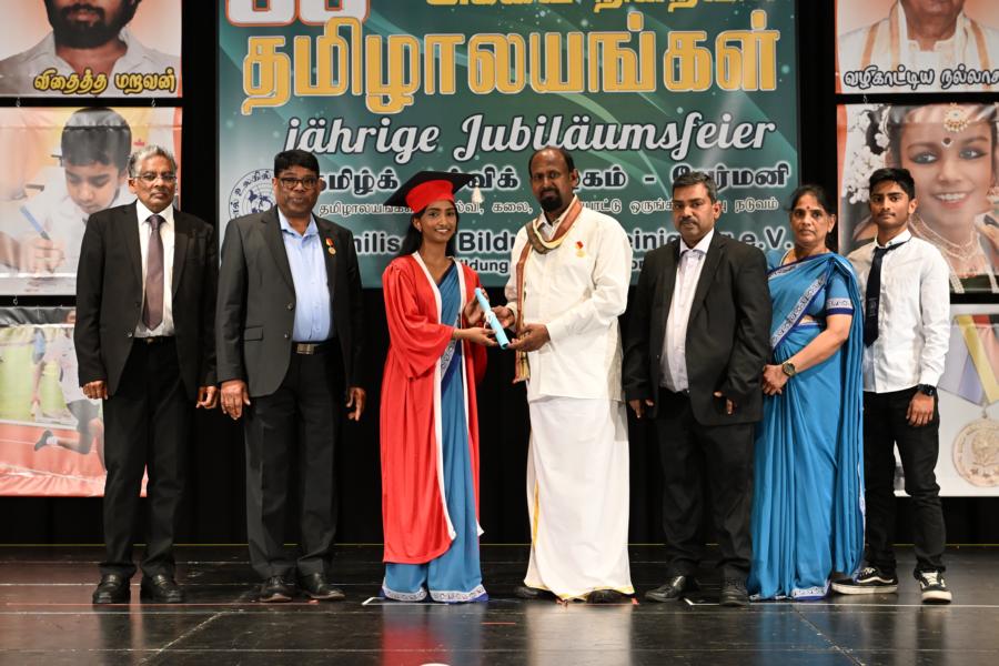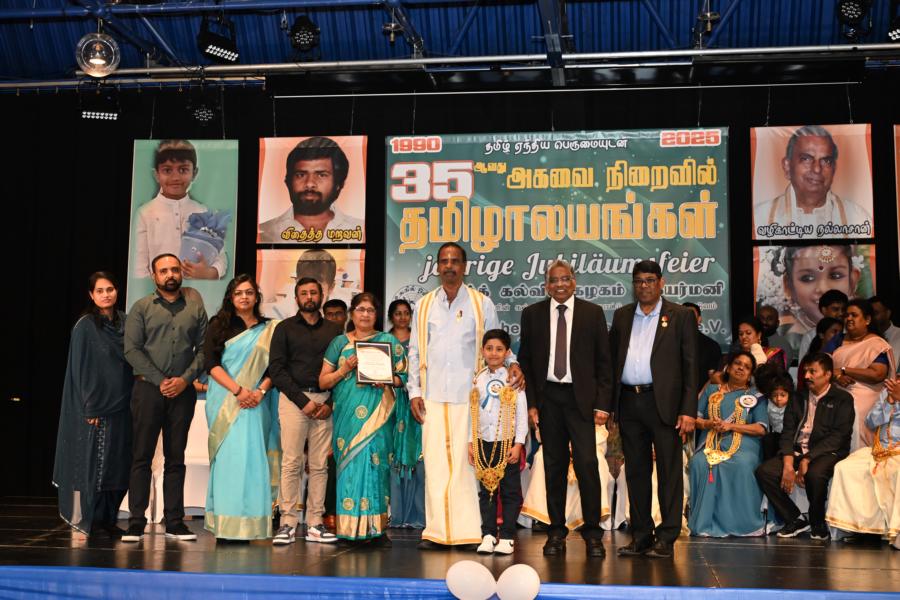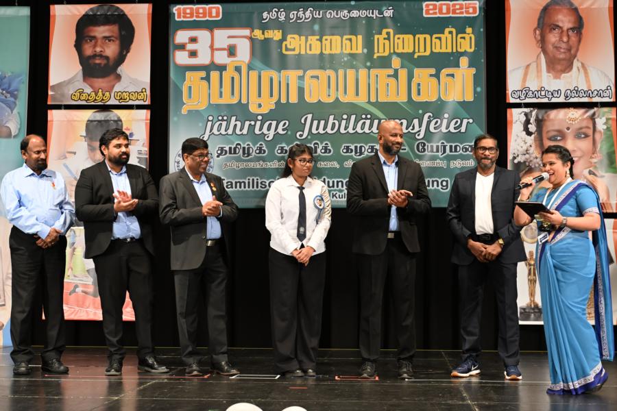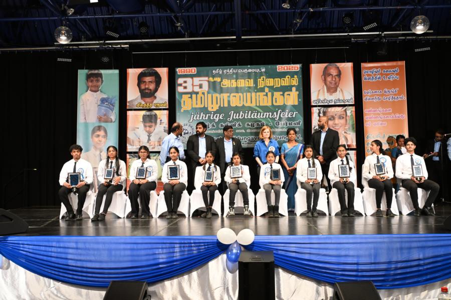 யூச்சன் தமிழாலய நிர்வாகி தமிழ்மாணி திரு. தம்பையா சிவலிங்கம், கிறீபெல்ட் தமிழாலய நிர்வாகி தமிழ்மாணி திருமதி யஸ்ரின் உதயதேவி, கிறீபெல்ட், நெற்றெற்றால், வியர்சன் ஆகிய தமிழாலயங்களின் ஆசிரியர் தமிழ்மாணி திரு. ஆலாலசுந்தரம் ஞானகுமார், வூப்பெற்றால் தமிழாலய ஆசிரியர் தமிழ்மாணி திருமதி தெய்வறஞ்சனி கிருதரமூர்த்தி மற்றும் வூப்பெற்றால் தமிழாலய ஆசிரியர் தமிழ்மாணி திரு. செபஸ்ரியான் றொமாலியஸ் ஸ்ரீபன் ஆகியோருக்கு 30 ஆண்டுகள் பணிநிறைவுக்கான மதிப்பளிப்பும், கைன்ஸ்பேர்க் தமிழாலயத்தின் நிர்வாகியும் ஆசிரியரும் மற்றும் யூச்சன் தமிழாலயத்தின் ஆசிரியருமான தமிழ்மாணி திரு. திசைவீரசிங்கம் புஸ்பராசா அவர்களுக்கு 35 ஆண்டுகள் பணிநிறைவு மதிப்பளிப்பும் வழங்கப்பட்டன.