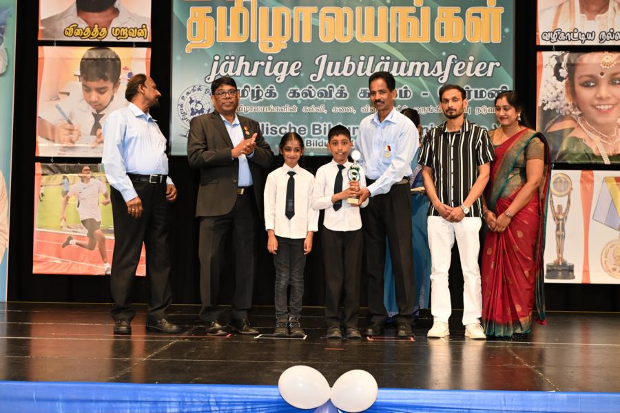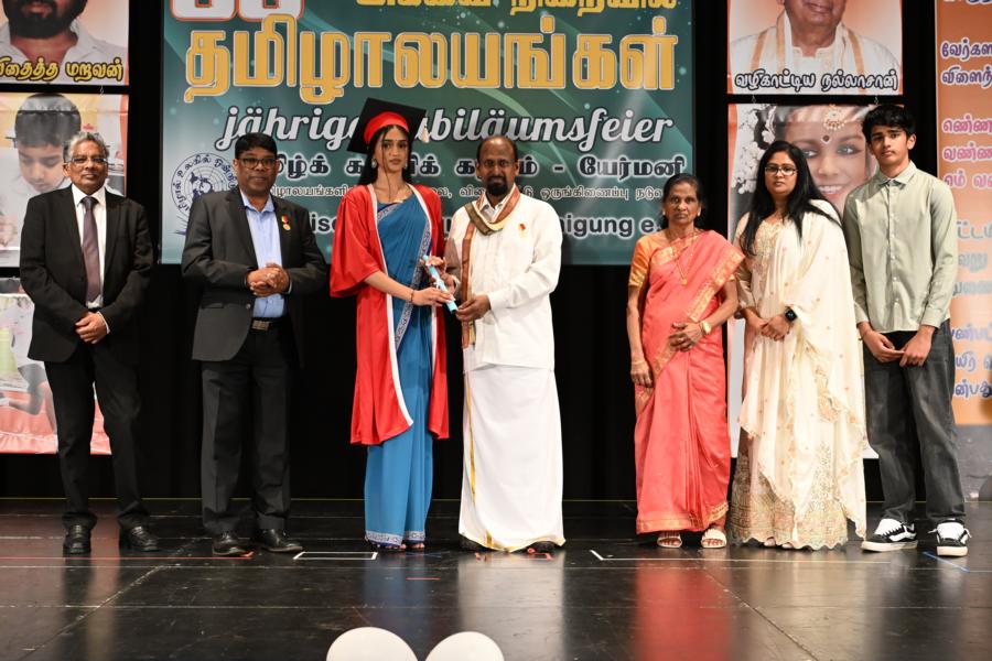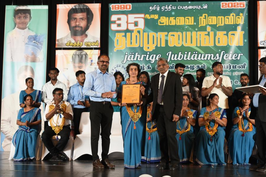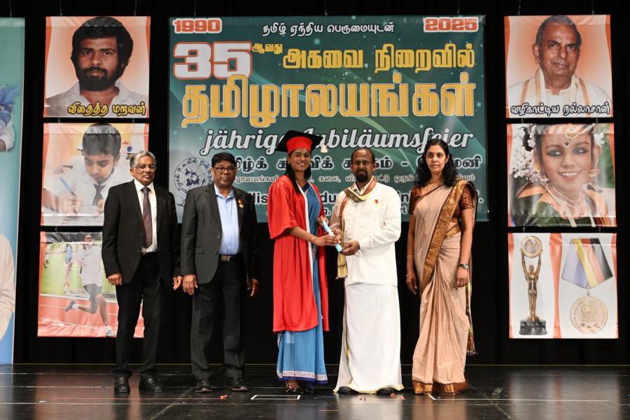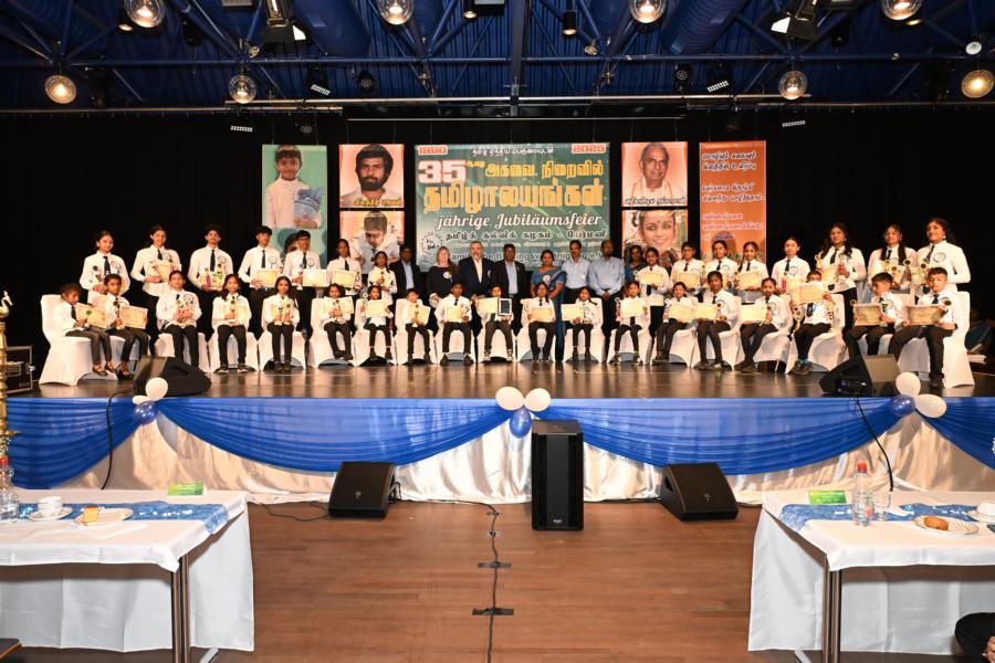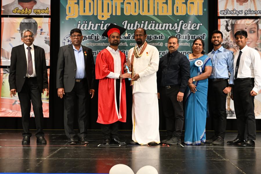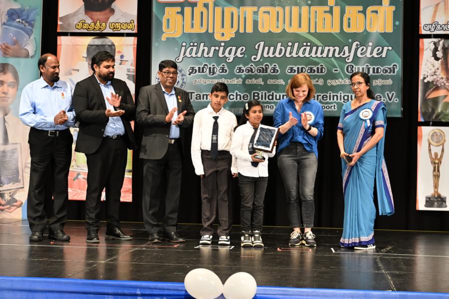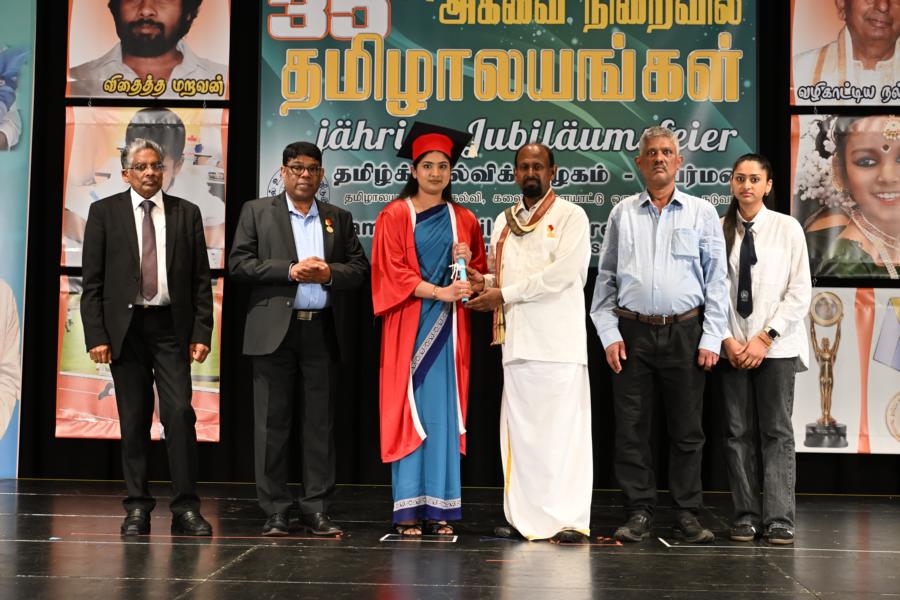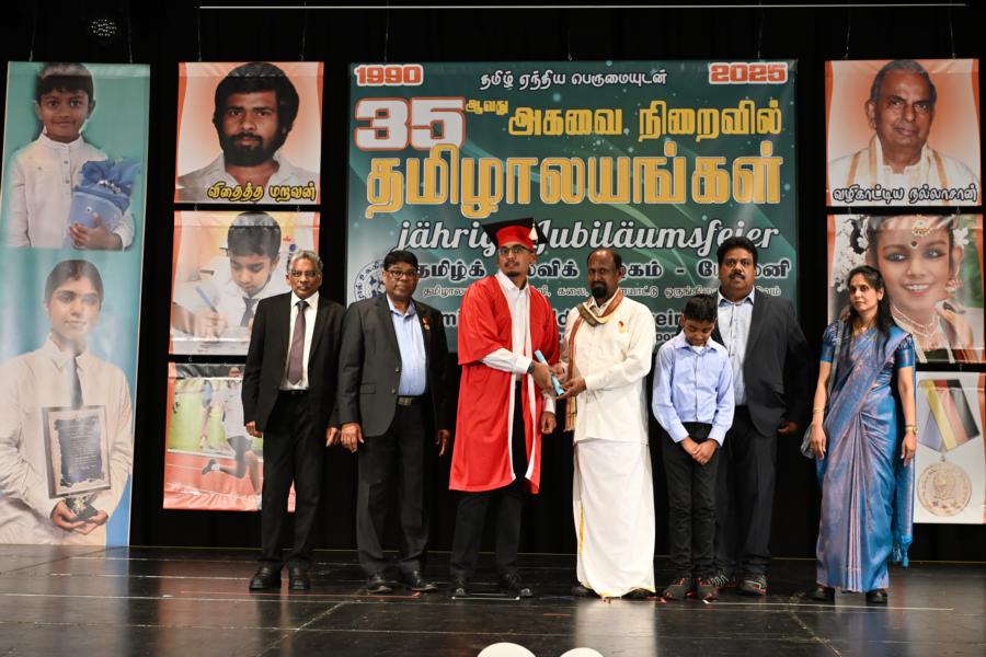 யூச்சன் தமிழாலய நிர்வாகி தமிழ்மாணி திரு. தம்பையா சிவலிங்கம், கிறீபெல்ட் தமிழாலய நிர்வாகி தமிழ்மாணி திருமதி யஸ்ரின் உதயதேவி, கிறீபெல்ட், நெற்றெற்றால், வியர்சன் ஆகிய தமிழாலயங்களின் ஆசிரியர் தமிழ்மாணி திரு. ஆலாலசுந்தரம் ஞானகுமார், வூப்பெற்றால் தமிழாலய ஆசிரியர் தமிழ்மாணி திருமதி தெய்வறஞ்சனி கிருதரமூர்த்தி மற்றும் வூப்பெற்றால் தமிழாலய ஆசிரியர் தமிழ்மாணி திரு. செபஸ்ரியான் றொமாலியஸ் ஸ்ரீபன் ஆகியோருக்கு 30 ஆண்டுகள் பணிநிறைவுக்கான மதிப்பளிப்பும், கைன்ஸ்பேர்க் தமிழாலயத்தின் நிர்வாகியும் ஆசிரியரும் மற்றும் யூச்சன் தமிழாலயத்தின் ஆசிரியருமான தமிழ்மாணி திரு. திசைவீரசிங்கம் புஸ்பராசா அவர்களுக்கு 35 ஆண்டுகள் பணிநிறைவு மதிப்பளிப்பும் வழங்கப்பட்டன.