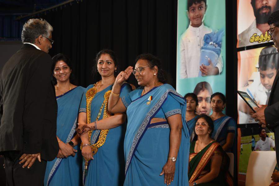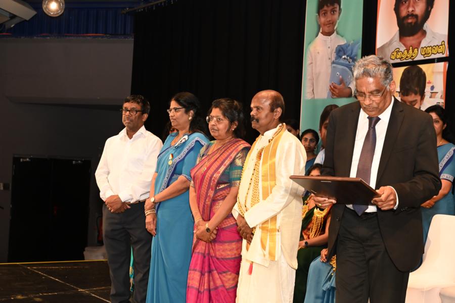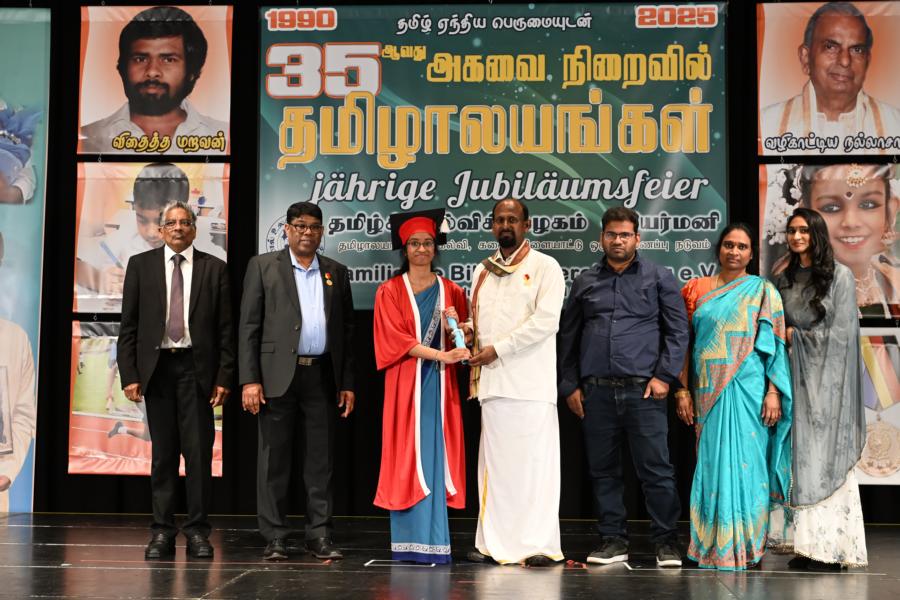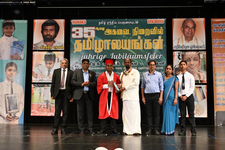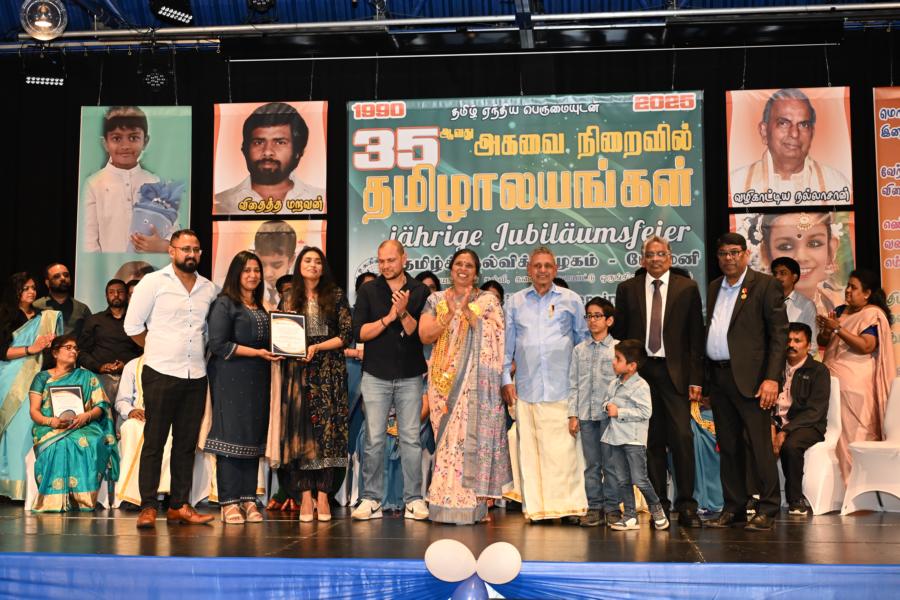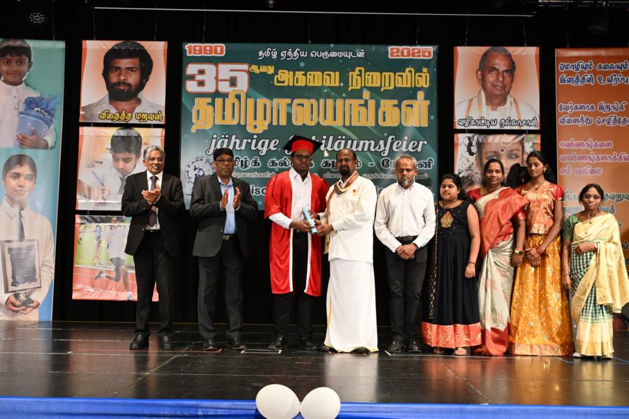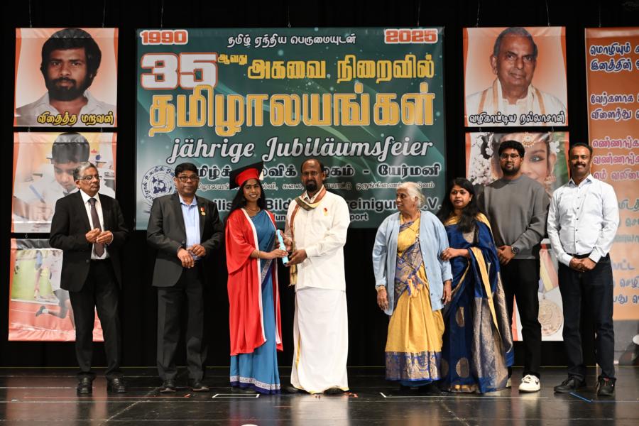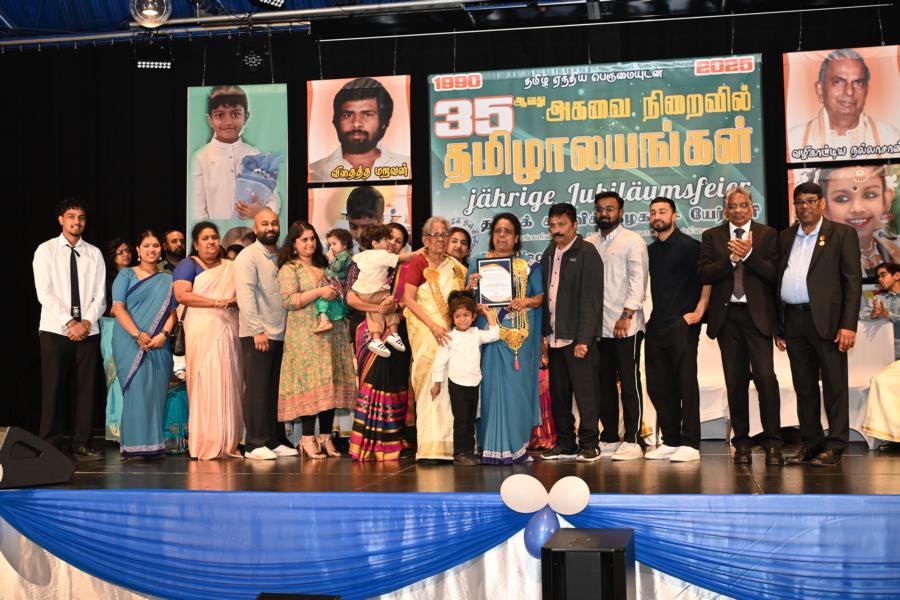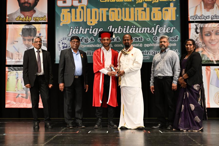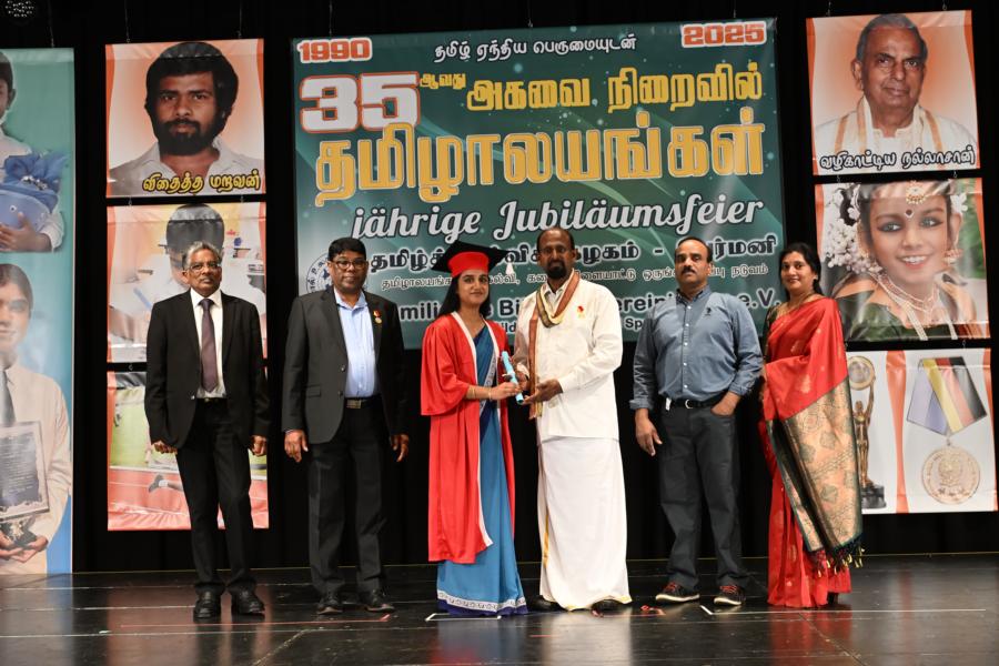 யூச்சன் தமிழாலய நிர்வாகி தமிழ்மாணி திரு. தம்பையா சிவலிங்கம், கிறீபெல்ட் தமிழாலய நிர்வாகி தமிழ்மாணி திருமதி யஸ்ரின் உதயதேவி, கிறீபெல்ட், நெற்றெற்றால், வியர்சன் ஆகிய தமிழாலயங்களின் ஆசிரியர் தமிழ்மாணி திரு. ஆலாலசுந்தரம் ஞானகுமார், வூப்பெற்றால் தமிழாலய ஆசிரியர் தமிழ்மாணி திருமதி தெய்வறஞ்சனி கிருதரமூர்த்தி மற்றும் வூப்பெற்றால் தமிழாலய ஆசிரியர் தமிழ்மாணி திரு. செபஸ்ரியான் றொமாலியஸ் ஸ்ரீபன் ஆகியோருக்கு 30 ஆண்டுகள் பணிநிறைவுக்கான மதிப்பளிப்பும், கைன்ஸ்பேர்க் தமிழாலயத்தின் நிர்வாகியும் ஆசிரியரும் மற்றும் யூச்சன் தமிழாலயத்தின் ஆசிரியருமான தமிழ்மாணி திரு. திசைவீரசிங்கம் புஸ்பராசா அவர்களுக்கு 35 ஆண்டுகள் பணிநிறைவு மதிப்பளிப்பும் வழங்கப்பட்டன.