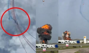 நேற்று (26)பிரான்ஸ் விமானப்படையின் 2 ஜெட் ரக விமானங்கள் நேற்றைய தினம் பயிற்சியின்போது நடுவானில் மோதி விபத்துக்குள்ளானது. இதுதொடர்பாக வீடியோ வெளியாகி உள்ளது. கிழக்கு பிரான்சின் ஹாட்-மார்னேவில் உள்ள செயிண்ட்-டிசியர் அருகே நேற்று பயிற்சியின்போது பிரான்ஸ் விமானப்படை ஆல்பா ஜெட் விமானங்கள் இரன்டு நடுவானில் மோதிக்கொண்டன.