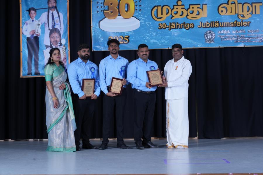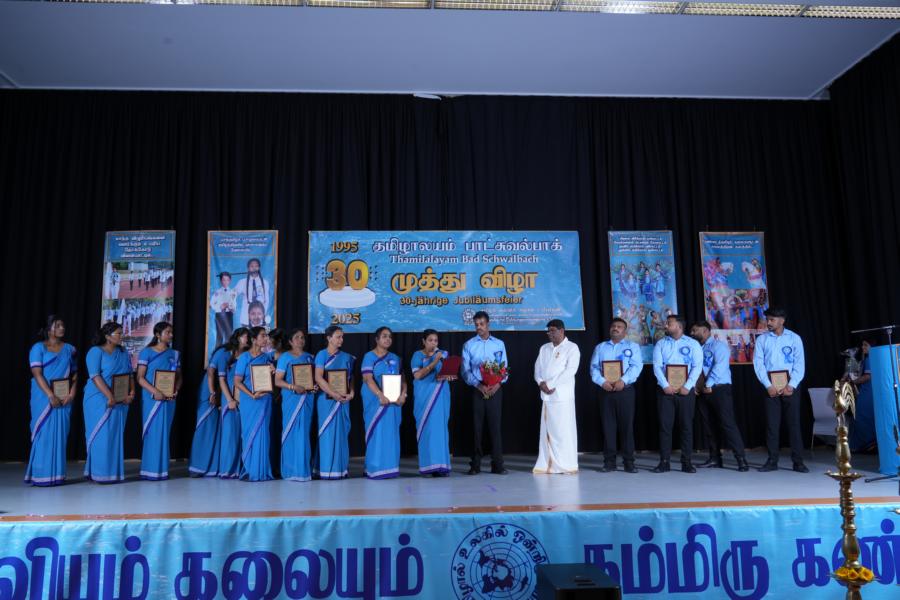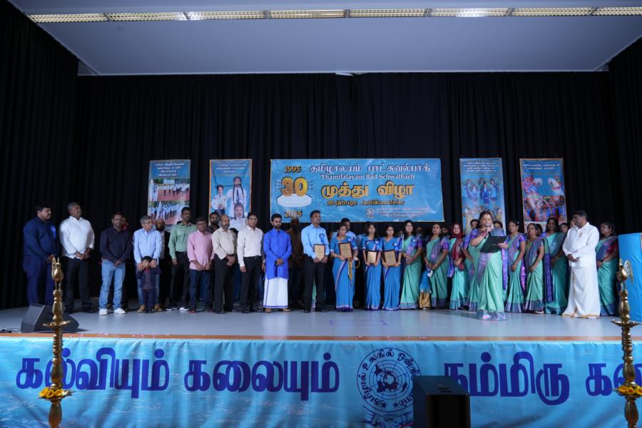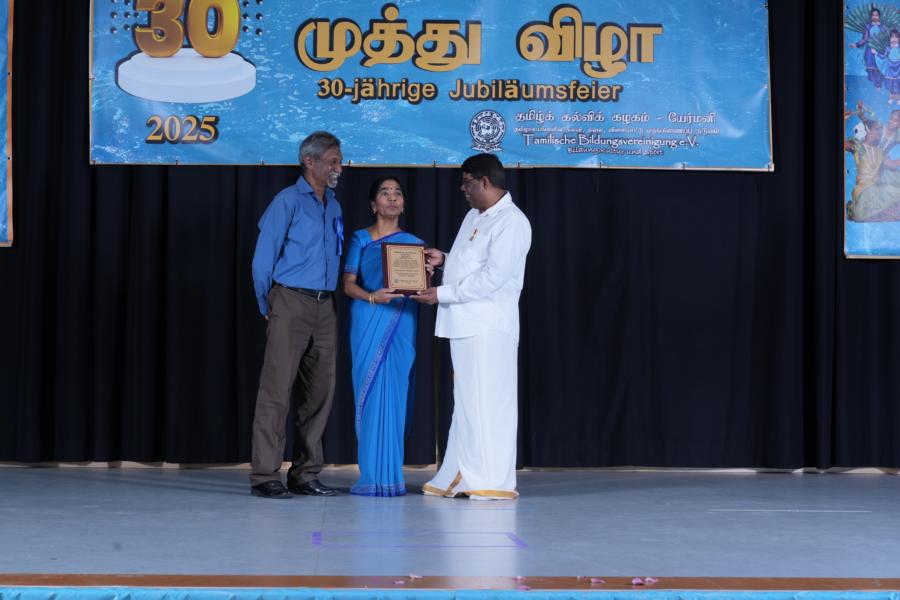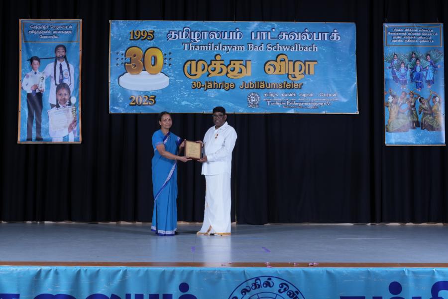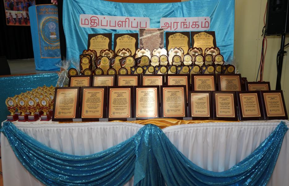 தமிழாலயத்தில் உயர்ந்த பணியாற்றும் ஆசிரியர்களுக்கு மதிப்பளிப்பை தமிழ்க் கல்விக் கழகத்தின் பொறுப்பாளர் “செம்மையாளன்” திரு. செல்லையா லோகானந்தம் அவர்கள் வாழ்த்தி வழங்கி வைத்தார். நிர்வாகிக்கான மதிப்பளிப்பை தமிழர் ஒருங்கிணைப்புக் குழு பொறுப்பாளர் திரு. யோன்பிள்ளை சிறிரவீந்திரநாதன் அவர்களும் தமிழ்க் கல்விக் கழகத்தின் பொறுப்பாளரும் இணைந்து, பெற்றோர்கள் ஆசிரியர்கள் முன்னிலையில் வாழ்த்தி வழங்கினார்கள். பெற்றோர்களும் நிர்வாகிக்கு வாழ்த்துப் பட்டயம் வழங்கிச் சிறப்பித்தனர். தமிழாலயத்தின் ஏனைய செயற்பாட்டாளர்கள் மற்றும் பெற்றோர் பிரதிநிதி ஆகியோருக்கு தமிழ்க் கல்விக் கழகத்தின் கலைப்பிரிவுப் பொறுப்பாளர் தமிழ் மாணி திரு. மார்கண்டு பாஸ்கரமூர்த்தி மதிப்பளிப்பை வழங்கி வைத்தார்.
