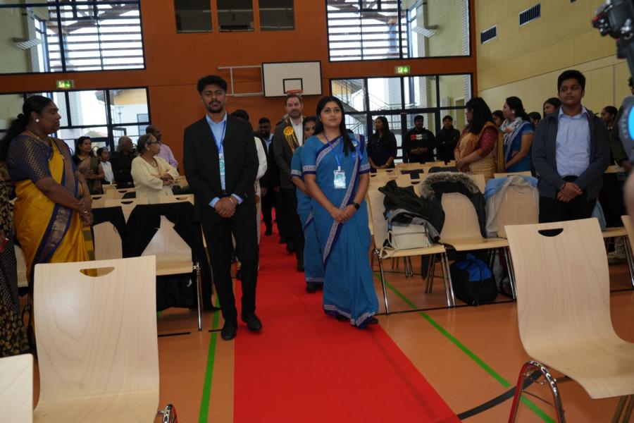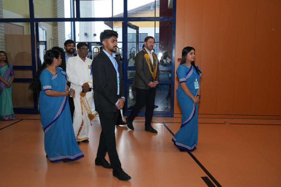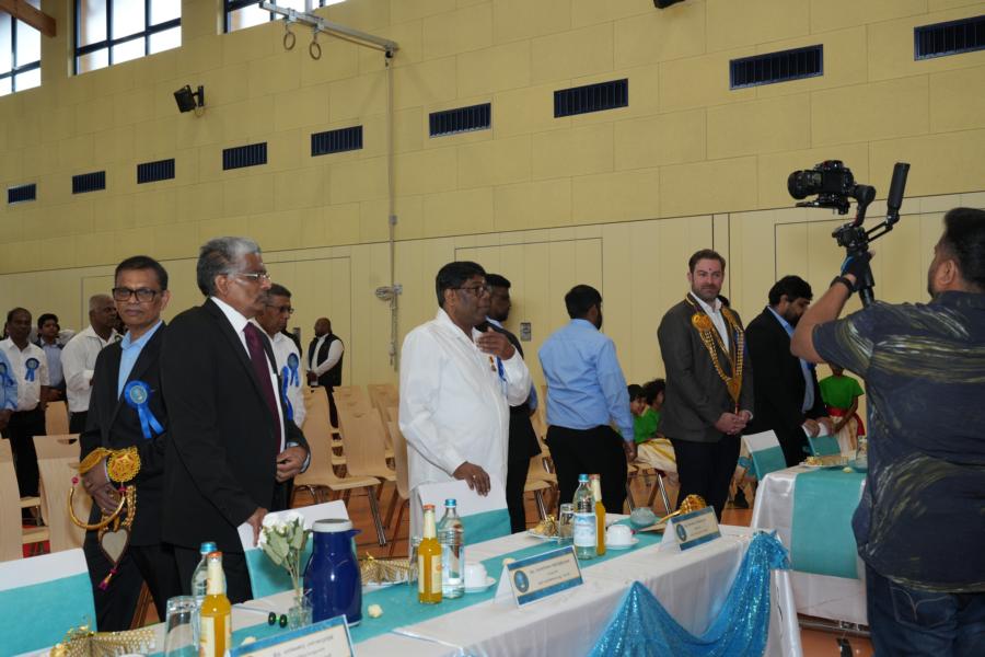 அதனைத் தொடர்ந்து சிறப்பு விருந்தினர்கள் தமிழர் பண்பாடு தழுவி, வரவேற்புப் பாடலுடன் மண்டபத்தினுள் அழைத்து வரப்பட்டனர். அவர்களை தமிழாலய இளைய செயற்பாட்டாளர்களும் நிர்வாகத்தினரும் பெற்றோர்களும் அணிதிரண்டு சிறப்பாக வரவேற்றனர்.