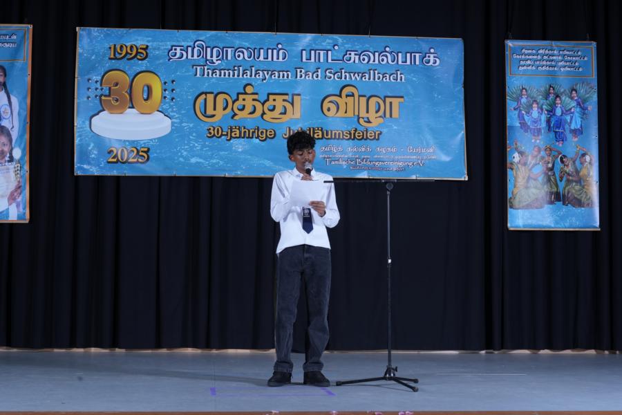 அகவணக்கம், தமிழாலயப்பண், வரவேற்பு நடனத்தைத் தொடர்ந்து தமிழாலய நிர்வாகி திருமதி ரஜனி லிங்கதாசன் அவர்களின் வரவேற்புரையுடன் நிகழ்வுகள் தொடர்ந்து நடைபெற்றது. கலைநிகழ்வுகளுடன் தமிழ்த்திறன் போட்டிகளில் வெற்றி பெற்ற மாணவர்களுக்கும் கடந்த ஐந்து ஆண்டுகளில் அனைத்துலகப் பொதுத் தேர்வில் அதிதிறன் பெற்ற மாணவர்களுக்கும் ஆண்டு 12ஐ நிறைவு செய்த மாணவர்களுக்கும் மதிப்பளிப்புகள் இடம்பெற்றன.
