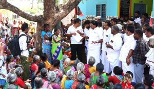 ஆர்ப்பாட்டம் நிறைவடையும் நேரத்தில் அப்பகுதியைச் சேர்ந்த மீனா என்ற பெண் எழுந்து அமைச்சரிடம் நேரடியாக “கிராம சபைக் கூட்டம் நடக்கும் இடத்தில் எதற்காக ஆர்ப்பாட்டம் நடத்துகிறீர்கள்?” என கேள்வி எழுப்பினார். மேலும், “மக்களை ஏன் திசை திருப்புகிறீர்கள்? மத்திய அரசு 36 ஆயிரம் கோடி ரூபாய் தமிழகத்துக்கு ஒதுக்கியுள்ளதே, பொதுமக்களாகிய எனது கேள்விக்கு அமைச்சராகிய நீங்கள் பதில் சொல்ல வேண்டும்” என கேள்வி எழுப்பினார்.