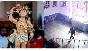 சிலையிலிருந்த கிரீடம், அம்புகள் மற்றும் தங்க ஆபரணங்களை அந்த நபர் திருடிச் சென்றதாக பொலிசார் மேலும் தெரிவித்தனர்.