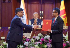 04- – பாதுகாப்பு ஒத்துழைப்பு தொடர்பான புரிந்துணர்வு ஒப்பந்தம் பாதுகாப்பு அமைச்சின் செயலாளர் ஓய்வுபெற்ற எயார் வைஸ் மார்ஷல் எச்.எஸ். சம்பத் துய்யகொந்த மற்றும் இந்திய வெளியுறவு செயலாளர் விக்ரம் மிஸ்ரி ஆகியோரால் பரிமாறிக் கொள்ளப்பட்டது.
