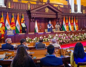 இன்று முற்பகல் ஜனாதிபதி அலுவலகத்தில் நடைபெற்ற உத்தியோகபூர்வ சந்திப்பிற்குப் பிறகு இரு தலைவர்களும் இதில் இணைந்துகொண்டனர். இலங்கைக்கும் இந்தியாவிற்கும் இடையிலான “நூற்றாண்டு நட்புறவின் வளமான எதிர்காலத்திற்கான உறுதிப்பாடு” (Friendship Of Centuries Commitment to Prosperous Future) என்ற கருத்தை மீண்டும் உறுதிப்படுத்தும் வகையில் இந்தியப் பிரதமர் ஸ்ரீ நரேந்திர மோடியின் இலங்கை விஜயம் அமைந்துள்ளது.