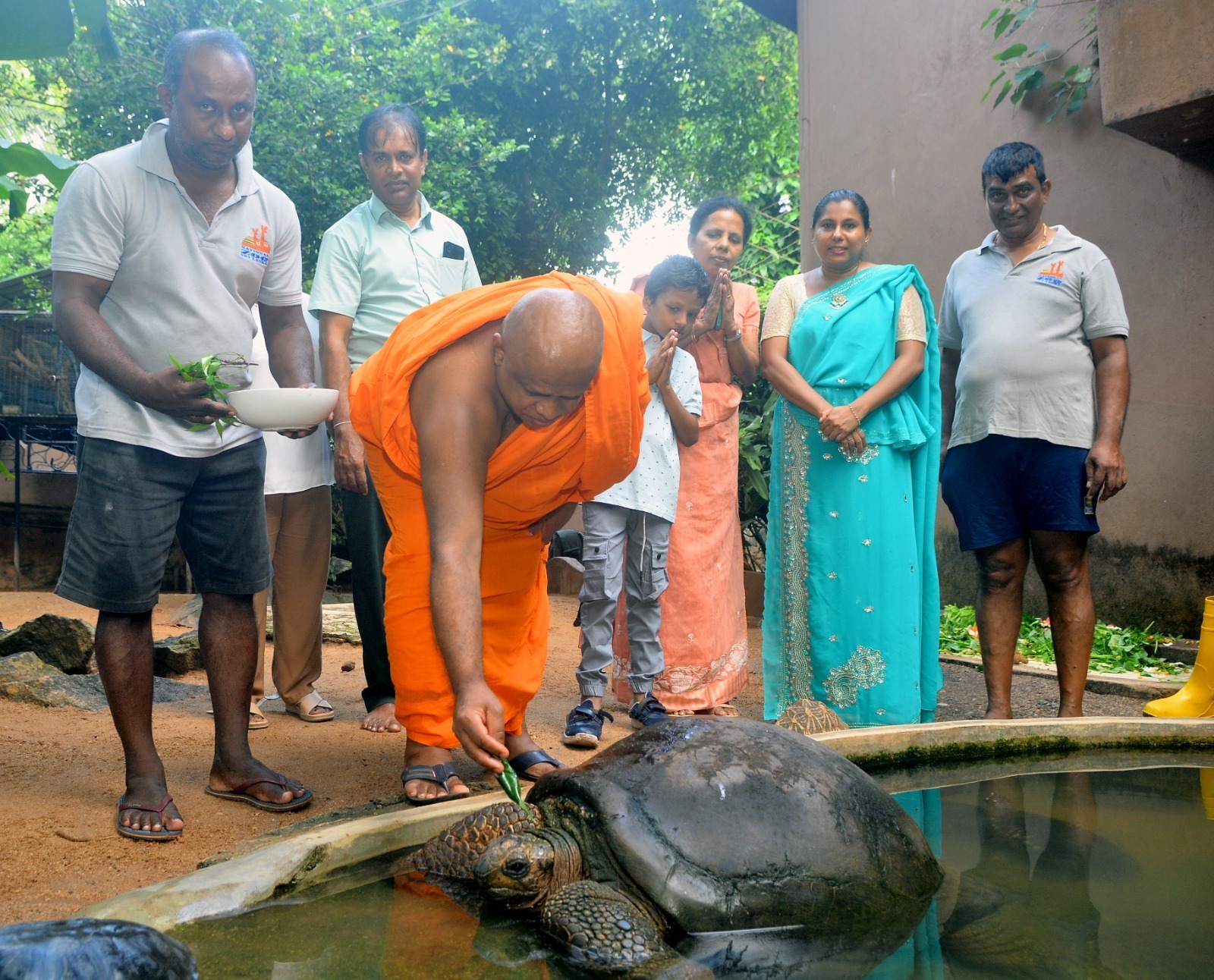 இதன்போது, தெஹிவளை மிருகக்காட்சி சாலையில் உள்ள 153 வயதான ஆமைக்கு முதலில் தலையில் எண்ணெய் பூசப்பட்டது.