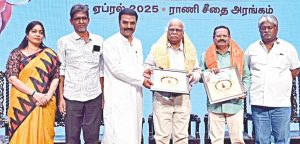 ‘முன்றில்’ இலக்கிய அமைப்பு சார்பில் மா.அரங்கநாதன் இலக்கிய விருது-2025 வழங்கும் நிகழ்ச்சி சென்னை அண்ணா சாலையில் உள்ள ராணி சீதை அரங்கில் நடைபெற்றது. இதில் உச்ச நீதிமன்ற நீதிபதி அரங்க.மகாதேவன் பங்கேற்று, தமிழ் இலக்கிய வளர்ச்சிக்காக பாடுபட்டு வரும் பேராசிரியர் தமிழவன், ப.திருநாவுக்கரசு ஆகியோருக்கு ‘மா.அரங்கநாதன் இலக்கிய விருது’ வழங்கி கவுரவித்தார். தொடர்ந்து ‘மா.அரங்கநாதன்’ மற்றும் ‘முன்றில்’ ஆகிய வலைதளங்களை தொடங்கிவைத்தார்.