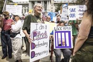 அமெரிக்காவில் அரசாங்கவேலைகளை குறைப்பதற்கான ,ஏனைய நலன்புரி சேவைகளிற்கான நிதியை குறைப்பதற்கான முயற்சிகள் குறித்து தமது விரக்தியை ஆர்ப்பாட்டக்காரர்கள்,வெளியிட்டுள்ளனர்.
