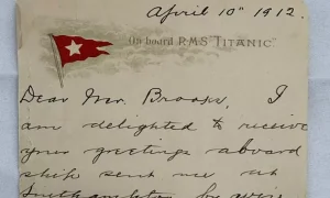 இதில் 1,500-க்கும் மேற்பட்டோர் பலியாகினர்.உலகையே உலுக்கிய இந்த விபத்து ஹாலிவுட் படமாகவும் வெளிவந்துள்ளது. அந்த கப்பலில் இருந்து கண்டெடுக்கப்பட்ட பொருள்கள் அவ்வப்போது ஏலம் விடப்படுவது வழக்கம்.இந்நிலையில், டைட்டானிக் கப்பலில் இருந்து கர்னல் ஆர்ச் சிபால்ட் கிரேசி என்பவர் எழுதிய ஒரு கடிதம் லண்டனில் ஏலத்துக்கு விடப்பட்டது.