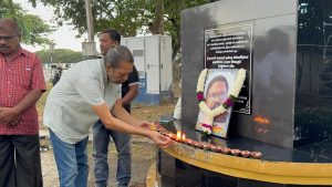 சிரேஸ்ட ஊடகவியலாளர் மாமனிதர் தராகி சிவராமனின் உருவப்படத்திற்கு ஈகைச்சுடர் ஏற்றி மலர் அஞ்சலி செலுத்தப்பட்டு அஞ்சலி செலுத்தப்பட்டதுடன் இன்றைய நாளில் படுகொலைசெய்யப்பட்ட மாமனிதர் சிவராம் மற்றும் ஊடகவியலாளர் ரஜீபன் ஆகியோரின் ஆத்மசாந்திக்காக அகவணக்கம் செலுத்தப்பட்டது.