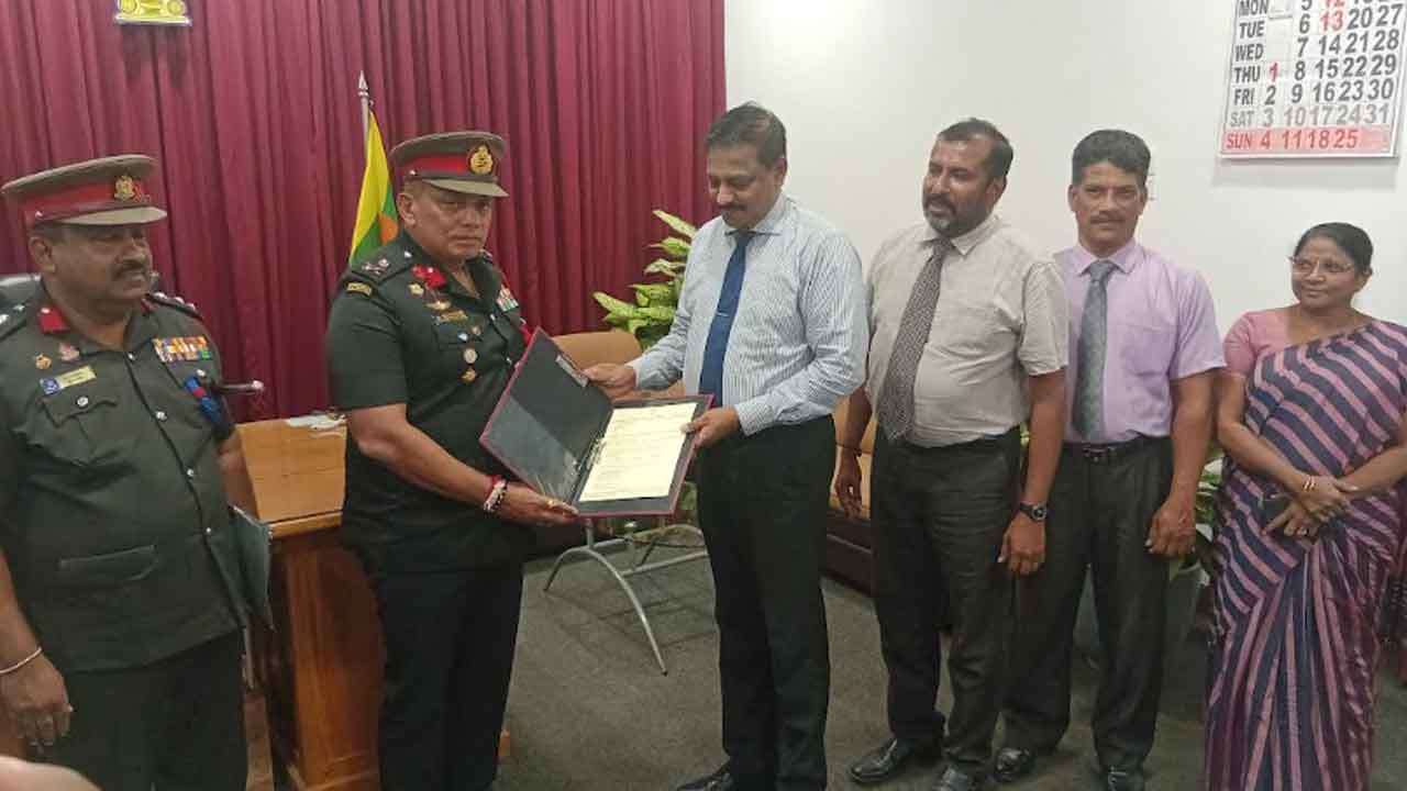 யாழ் மாவட்ட கட்டளைத் தளபதி மானத ஜெகம்பத் அவர்களினால் யாழ் மாவட்ட செயலர் பிரதீபனிடம் விடுவிக்கப்பட்ட பகுதிகளுக்கான காணி அனுமதிப்பத்திரங்கள் இன்றையதினம் முற்பகல் 11.30 மணியளவில் யாழ் மாவட்ட செயலகத்தில் இடம்பெற்ற நிகழ்வில் உத்தியோகபூர்வமாகக் கையளிக்கப்பட்டன.