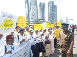 ஓய்வூதியம் பெற்றவர்களின் சம்பள முரண்பாட்டுக்கு தீர்வு கோரி இன்று வெள்ளிக்கிழமை (2) முற்பகல் 10.30 மணியளவில் ஜனாதிபதி செயலகத்துக்கு முன்பாக ஆர்ப்பாட்டம் நடத்தப்பட்டது.