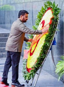 பின்னர் ஜனாதிபதி மாளிகையில் உள்ள ஹோ சி மின் நினைவிடத்தை பார்வையிட்டதுடன், சுதந்திரப் போராட்டத் தலைவரும், சுதந்திர வியட்நாமின் முதல் ஜனாதிபதியுமான ஹோ சி மின் இன் அஸ்தி அடக்கம் செய்யப்பட்டுள்ள கல்லறைக்கு மலர் அஞ்சலி செலுத்தினார்.