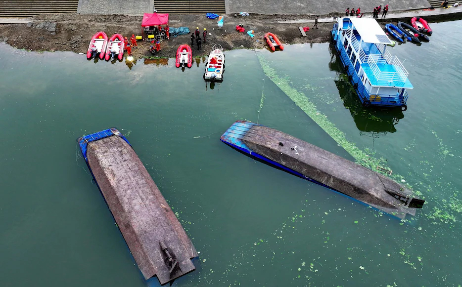 சீனாவின் குசோயு மாகாணத்தில் உள்ள யாங்சி நதியின் துணை நதியான ‘வு’ (Wu) ஆற்றில் நேற்று நான்கு படகுகள் மூழ்கி விபத்துக்குள்ளானபோது அப்படகுகளில் இருந்த 80க்கு மேற்பட்டோர் நீரில் விழுந்துள்ளனர்.