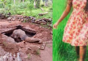 அநுராதபுரம், அளுத்வெவ அமைந்துள்ள வீடொன்றிற்கு பின்புறத்தில் உள்ள குழியில் காட்டு யானை ஒன்று விழுந்துள்ளது.