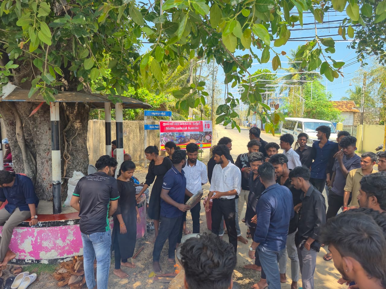முள்ளிவாய்க்கால் மண்ணில் இறுதி யுத்த நேரத்தில் அங்கிருந்த மக்கள் தமது உயிரை காப்பதற்காக தயாரித்து அருந்திய முள்ளிவாய்க்கால் கஞ்சியை நினைவுகூரும் முகமாக முள்ளிவாய்க்கால் கஞ்சி காய்ச்சி வழங்கும் நிகழ்வு திங்கட்கிழமை (12) யாழ். பல்கலைக்கழக மாணவர்களால் முன்னெடுக்கப்பட்டது.