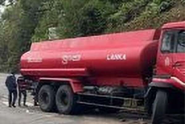 பௌசரின் உள்ளே 2 தாங்கிகளில் பெட்ரோல் மற்றும் டீசல் இருந்துள்ளது.