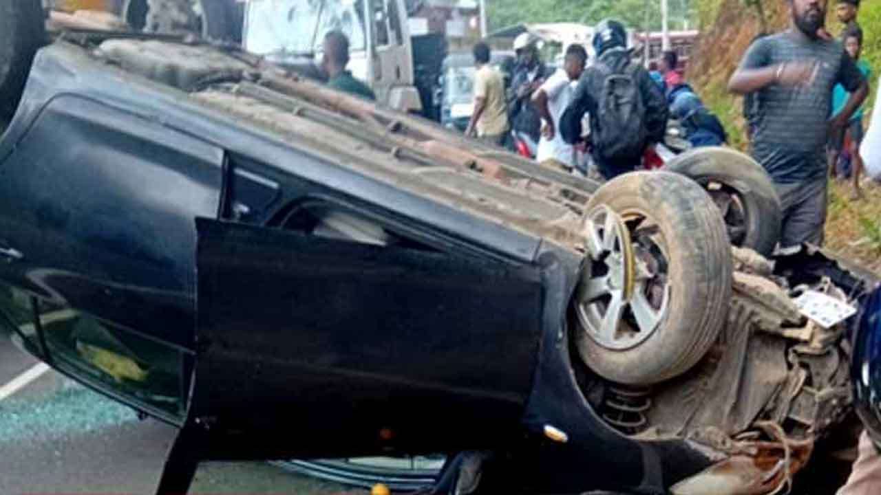 குறித்த காரை சட்டத்தரணி ஒருவர் செலுத்திச்சென்றுள்ள நிலையில், சாரதியின் கட்டுப்பாட்டை இழந்து கார் மண்மேட்டில் மோதியதாகக் கூறப்படுகிறது.