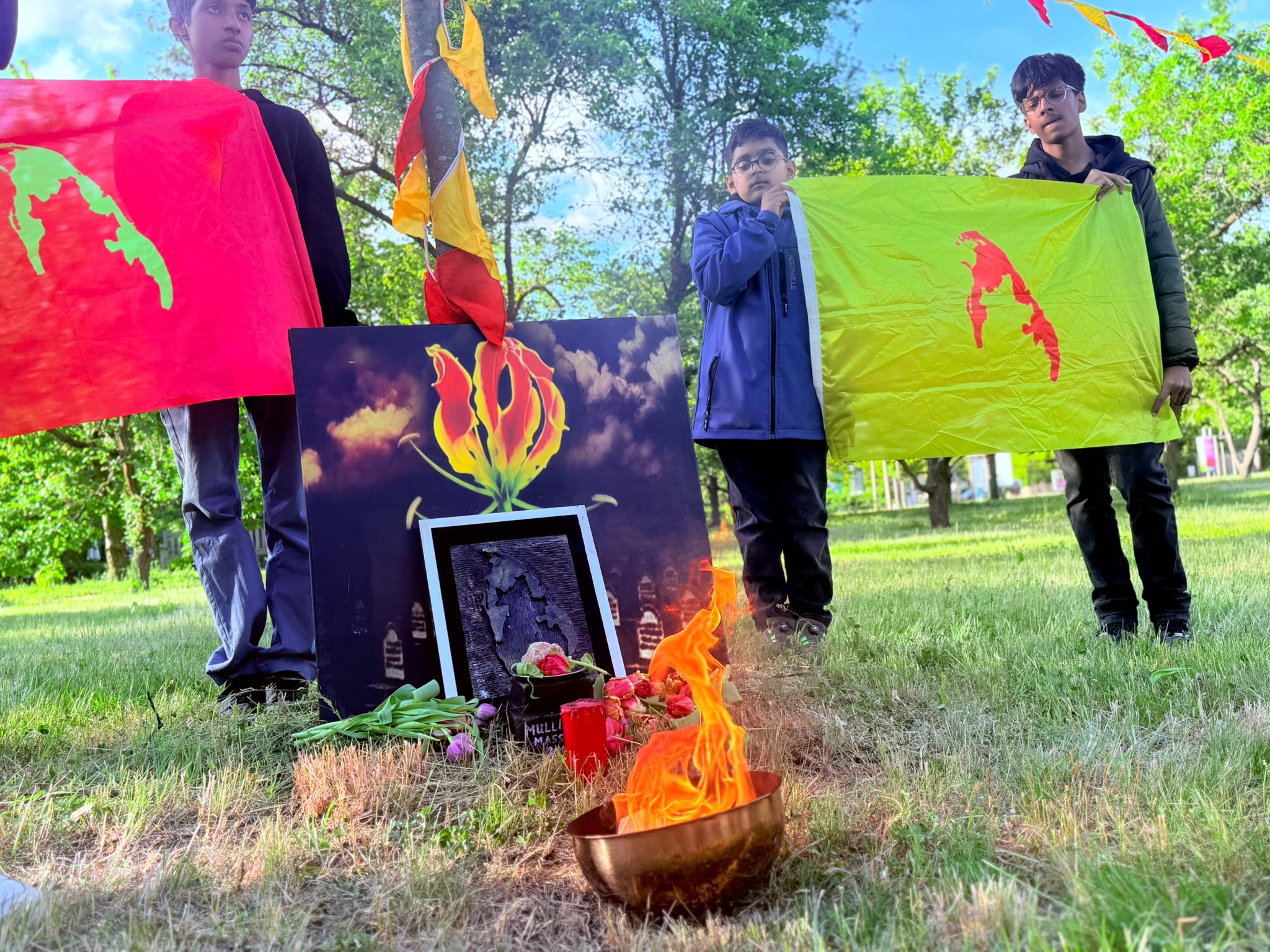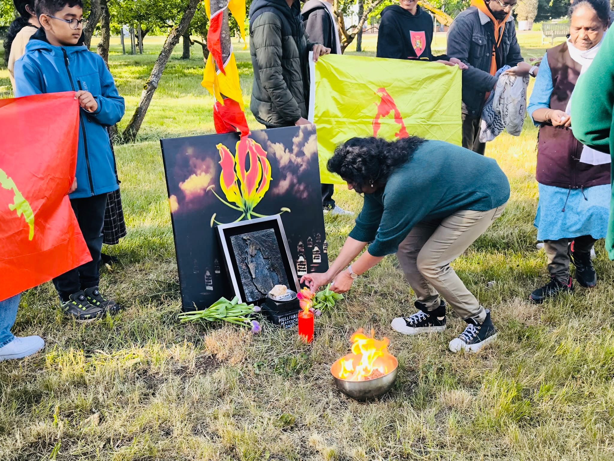 கொல்லப்பட்ட மக்களுக்கும் , ஈகம் செய்த மாவீரர்களுக்கும் வணக்கம் செலுத்தப்பட்டு இறுதியில் எப்படி ஆப்பிள் மரம் தனது வேர்களை ஆழமாக மண்ணில் பரப்பி நிலைத்திருக்குமோ அப்படி முள்ளிவாய்க்கால் மண்ணில் கொல்லப்பட்ட தமிழ் மக்களின் நினைவுகளும் எமது நெஞ்சங்களில் அழியாத நினைவுகளாக இருக்க வேண்டும் எனவும் அந்த மக்களின் நீதிக்காகவும் விடுதலைக்காகவும் தொடர்ந்து உழைப்போம் என உறுதியெடுத்துக் கொண்டனர்.