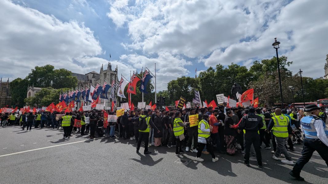 முள்ளிவாய்க்கால் 16ம் ஆண்டு நினைவு நாளை முன்னிட்டு, தமிழர் ஒருங்கிணைப்புக் குழு மற்றும் தமிழ் இளையோர் அமைப்பினரால் இன்று லண்டனில் நினைவு நிகழ்வு முன்னெடுக்கப்பட்டது. பிரித்தானிய பாராளுமன்ற சதுக்கத்தில் ஆயிரக்கணக்கான புலம்பெயர் தமிழர்கள் திரண்டனர். கொட்டொலிகளுடன் ஆரம்பமான நீதிக்கான போராட்டம், பேரணியாக வெளிவிவகார அமைச்சகம் மற்றும் பிரதமர் இல்லம் வரை முன்னெடுக்கப்பட்டது.