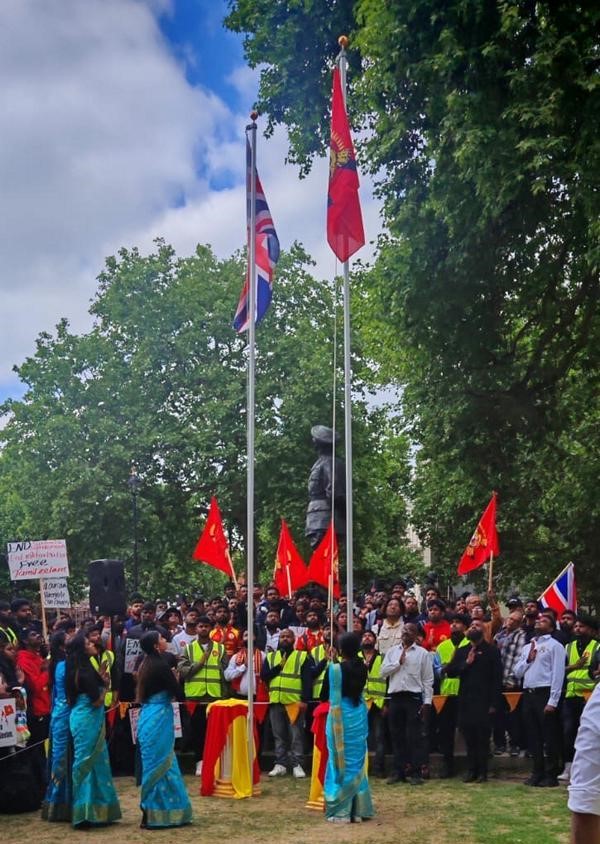 நிகழ்வில், பிரித்தானிய தேசியக்கொடியை டொமிபில்லா ராஜநாயகம் ஏற்றி வைத்தார். தமிழீழ தேசியக்கொடியை யாதவி தயாளபவன் அவர்கள் ஏற்றிவைத்தார்கள்.
