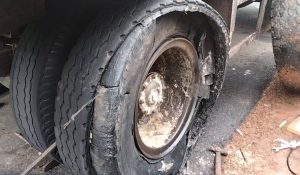 இதனால் தமது வாகனத்தை செலுத்த முடியாத நிலையில் பொலிஸார் கனரக வாகனத்தின் ரயர்களை நோக்கி துப்பாக்கிச்சூடு நடத்தினர்.