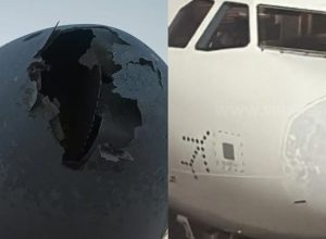 முன்பகுதி சேதமடைந்த விமானம் பாதுகாப்பாக ஸ்ரீநகரை அடைந்த நிலையில் பயணிகள் நிம்மதி பெருமூச்சி விட்டுள்ளனர்.