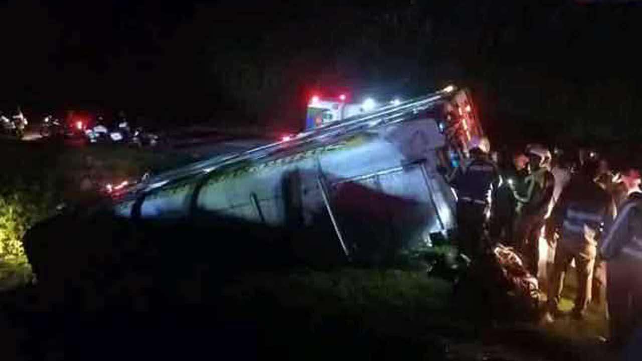 சாரதிக்கு ஏற்பட்ட நித்திரை கலக்கம் காரணமாக பேருந்து வீதியை விட்டு விலகி குடை சாய்ந்து விபத்து ஏற்பட்டிருக்கலாம் என பொலிஸார் சந்தேகிக்கின்றனர்.