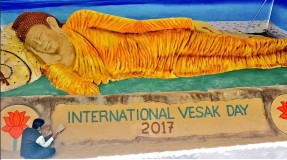 குறித்த புத்தர் சிலையை வடிவமைப்பதற்காக இந்தியாவில் இருந்து வருகை தந்த சுதர்சன் பட்நாயக் இதனை நிறைவு செய்துள்ளார்.14ஆவது சர்வதேச வெசாக் தினத்தை முன்னிட்டே குறித்த புத்தர் சிலை வடிவமைக்கப்பட்டுள்ளது. புகழ்பெற்ற மணல் கலைஞர் சுதர்சன் பட்நாயக் இந்த நீண்ட புத்தரை உருவாக்கியுள்ளார்.