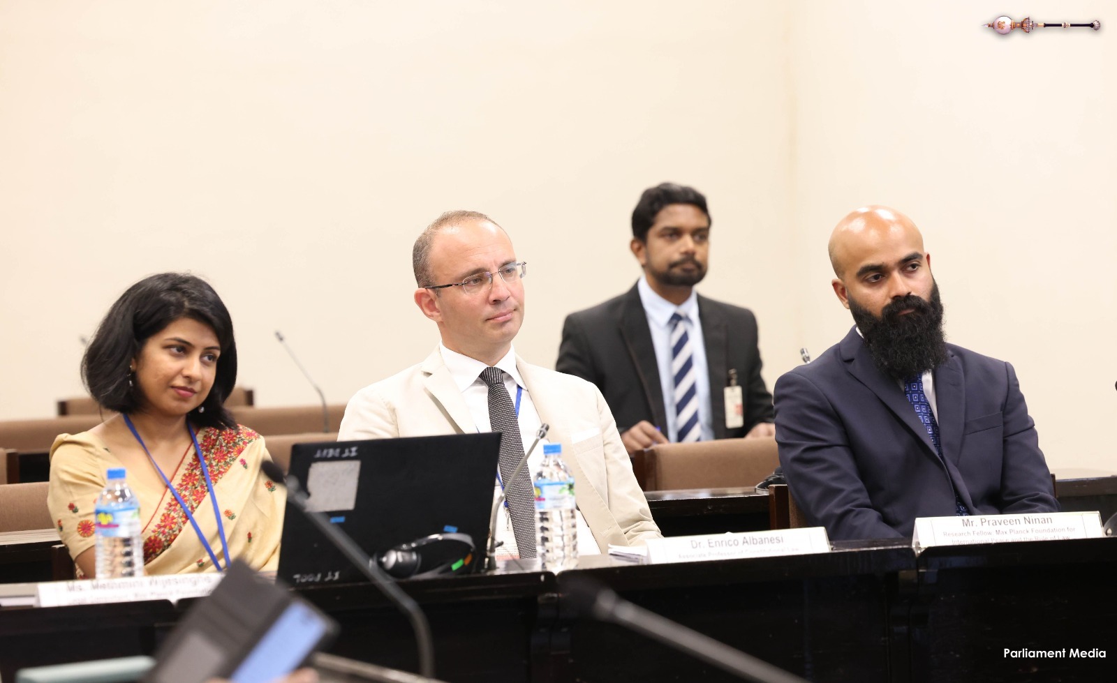 இந்தக் கருத்தரங்கில் ஜெனோவா பல்கலைக்கழகத்தின் பேராசிரியர் என்ரிகோ அல்பனேசி, மேக்ஸ் பிளாங்க் மன்றத்தின் ஆராய்ச்சி உதவியாளர் பிரவீன் சாக்கோ நினன் மற்றும் மேக்ஸ் பிளாங்க் மன்றத்தின் சட்ட ஆலோசகர் மெத்மினி விஜேசிங்க ஆகியோர் வளவாளர்களாகக் கலந்துகொண்டனர்.