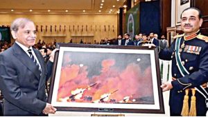 இந்த விழாவின்போது போர் தொடர்பான புகைப்படத்தை பிரதமர் ஷெபாஸ் ஷெரீபுக்கு ராணுவ தளபதி ஆசிம் முனீர் வழங்கினார். இந்த புகைப்படம் போலி புகைப்படம் என்று பாதுகாப்பு துறை நிபுணர்கள் தெரிவித்துள்ளனர். இதுகுறித்து அவர்கள் கூறும்போது, “சீன ராணுவத்தின் போர் ஒத்திகை புகைப்படத்தை பாகிஸ்தான் தளபதி ஆசிம் முனீர் பிரதமர் ஷெபாஸ் ஷெரீபுக்கு நினைவு பரிசாக வழங்கி உள்ளார். இந்த புகைப்படம் கடந்த 2019-ம் ஆண்டில் சீன ராணுவம் நடத்திய போர் ஒத்திகை ஆகும். அதற்கான ஆதாரங்கள் இணையத்தில் நிறைந்துள்ளன” என்று தெரிவித்தனர்.