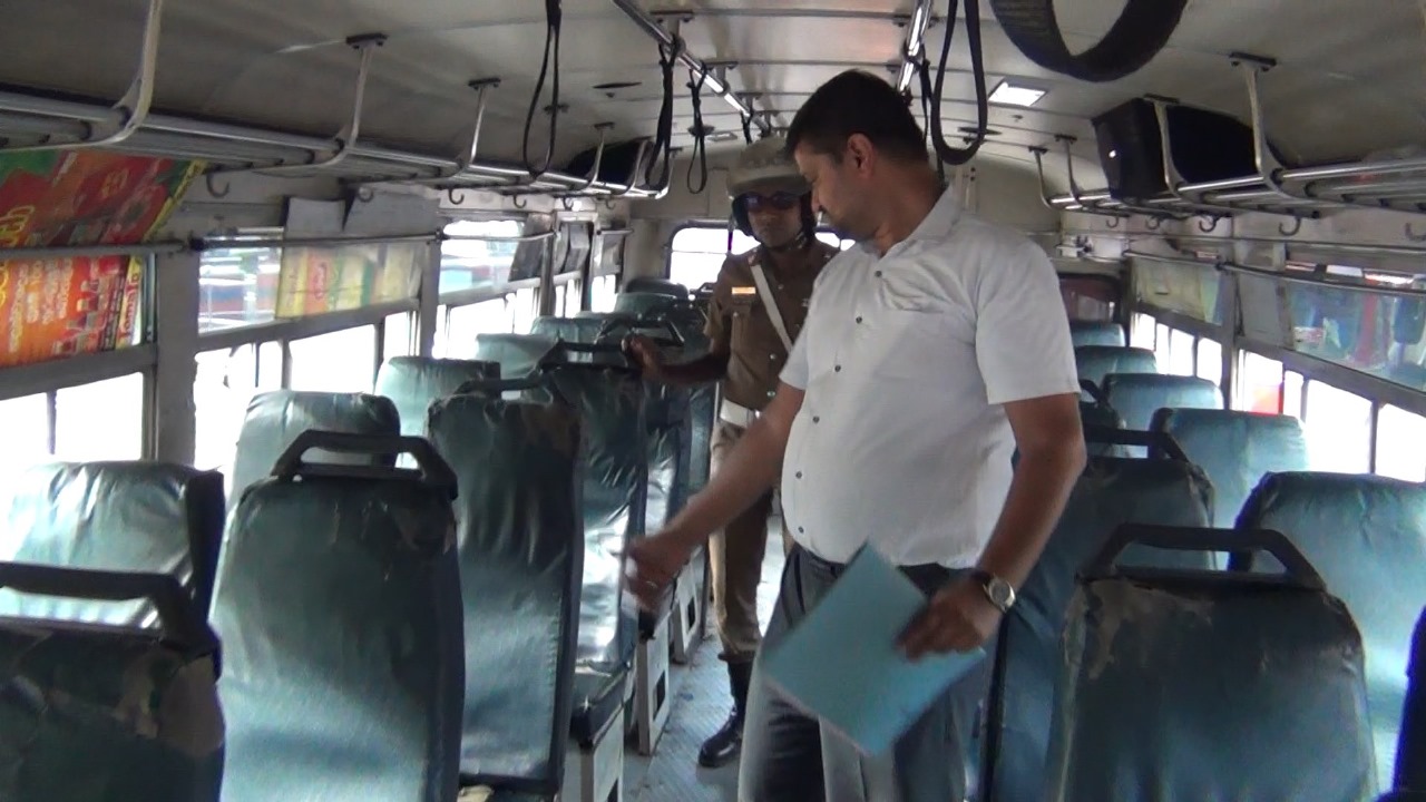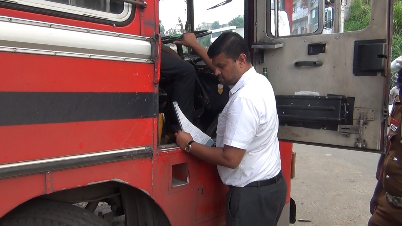 45 பேருந்துகள் சோதனைக்குப்படுத்தப்பட்ட நிலையில், இலங்கை போக்குவரத்து சபைக்குச் சொந்தமான 15 பேருந்துகளும் 19 தனியார் பேருந்துகளும் போக்குவரத்து சேவையினை முன்னெடுப்பதற்குத் தடை விதிக்கப்பட்டுள்ளது.