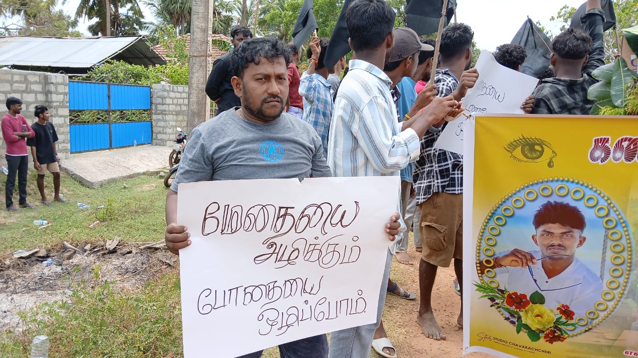 “வாள் வெட்டுக்குழுக்களை சட்டத்தின் முன் நிறுத்துங்கள்”, “உயிரை பறித்தவரை ஒருபோதும் மன்னிக்காதே; போதையை கூண்டோடு ஒழிப்போம்” போன்ற பதாதைகளையும் ஏந்தியிருந்தனர்.