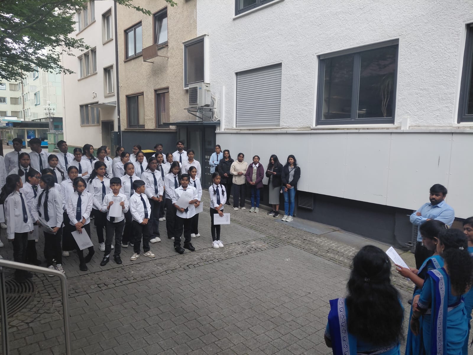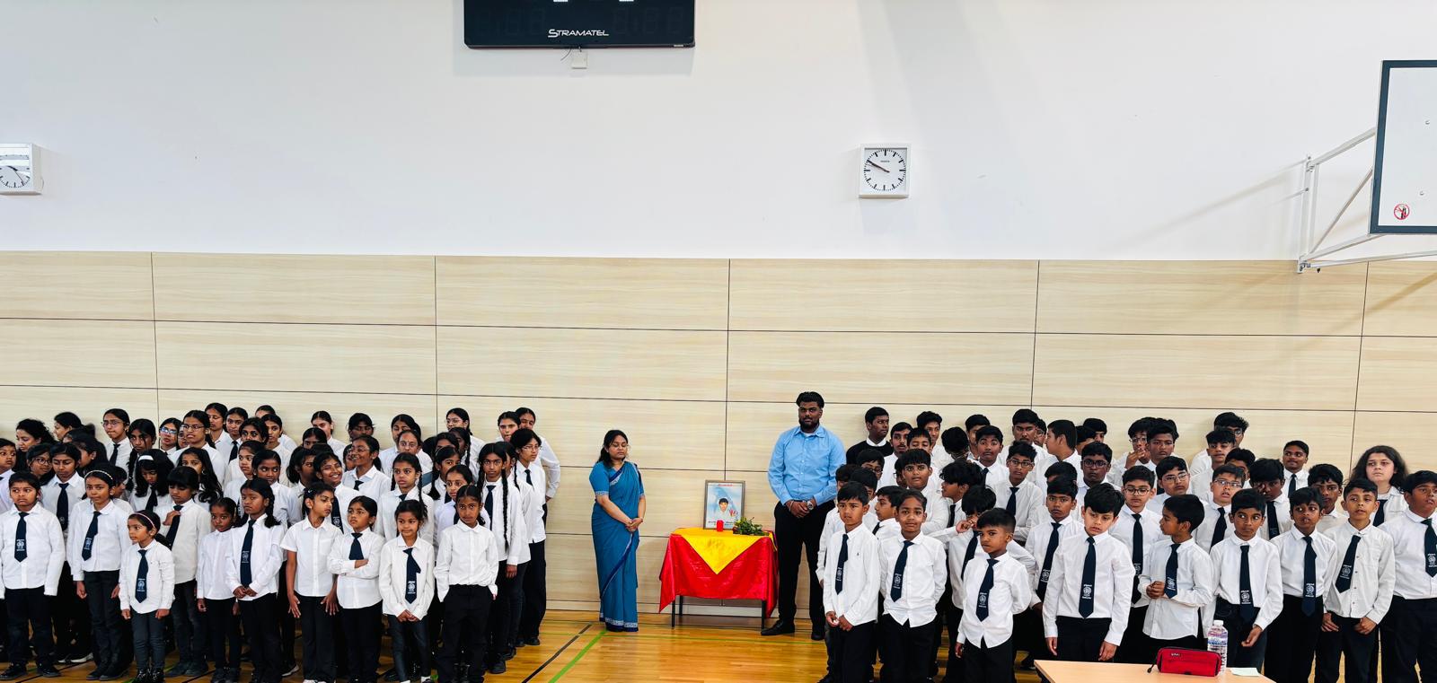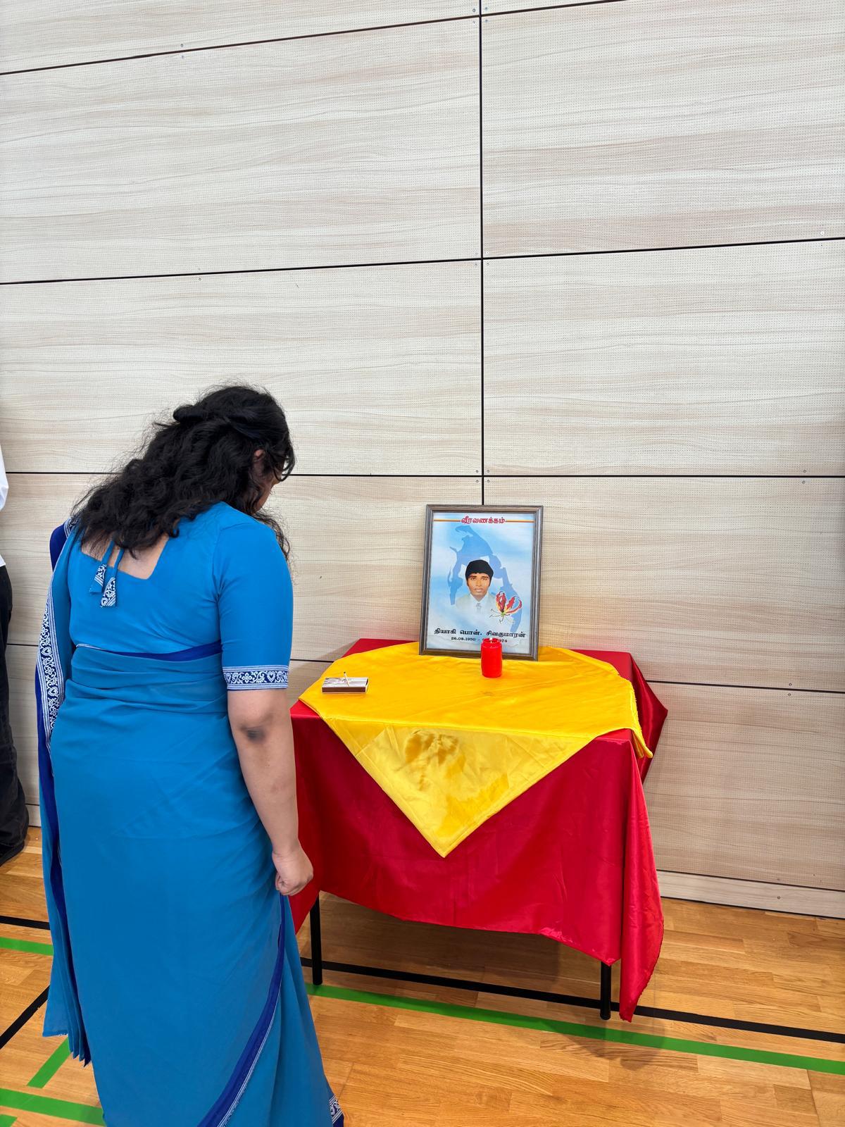 தமிழ்ப் பரிட்சை ஆரம்பமாதற்கு முன்பாக தியாகி சிவகுமாரன் அவர்களுக்கு வணக்கம் செலுத்திய பேர்லின் தமிழாலய மாணவர்கள்.