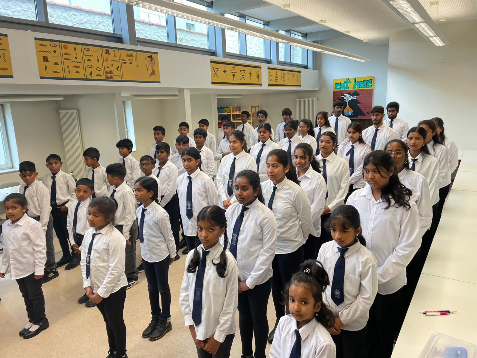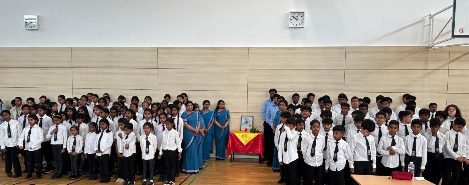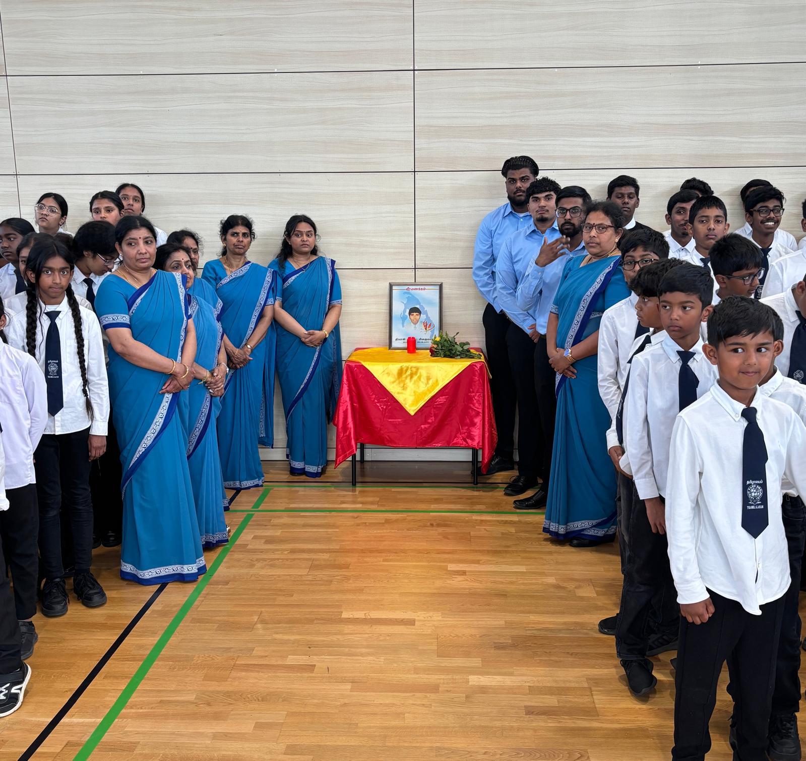 தமிழ்ப் பரிட்சை ஆரம்பமாதற்கு முன்பாக தியாகி சிவகுமாரன் அவர்களுக்கு வணக்கம் செலுத்திய பேர்லின் தமிழாலய மாணவர்கள்.