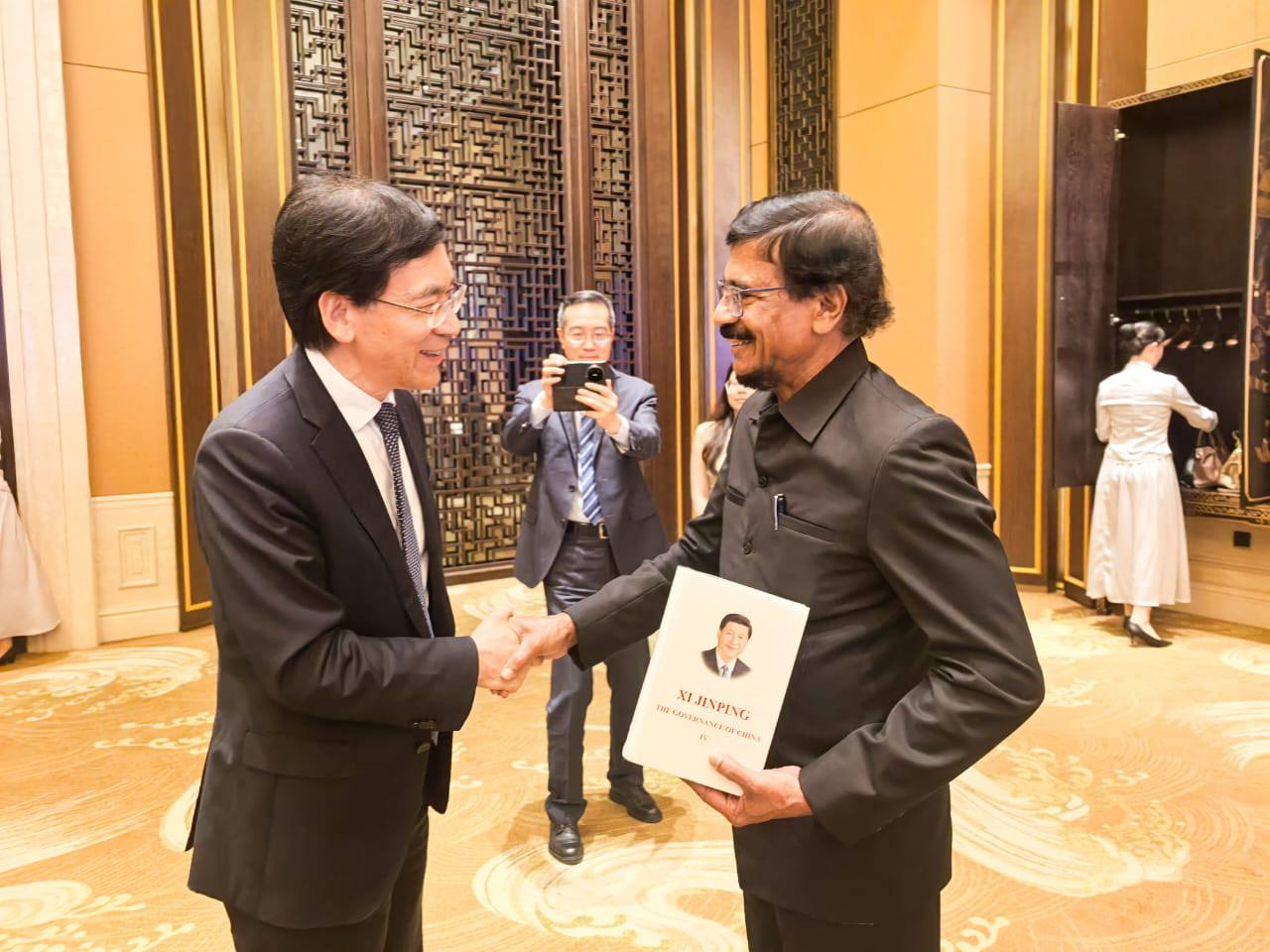 மக்கள் விடுதலை முன்னணியின் பொதுச் செயலாளர் ரில்வின் சில்வாவிற்கும், சீனாவின் ஜெஜியாங் மாகாண ஆளுநர் லியு ஜீக்கும் இடையிலான சந்திப்பு இடம்பெற்றுள்ளது.