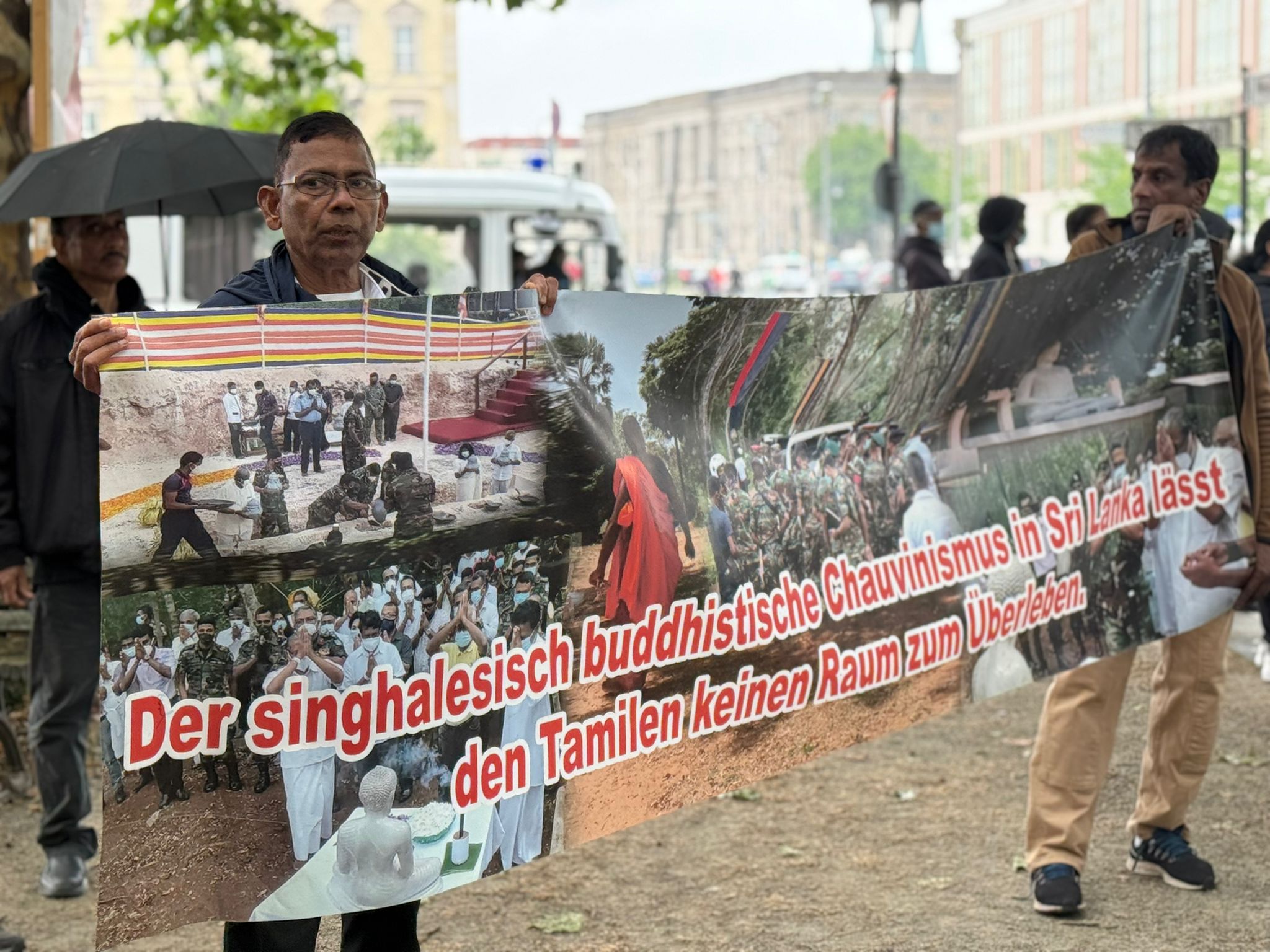 சிறிலங்காவின் ஜனாதிபதி வருகையையொட்டி ஈழத்தமிழர் களின் உண்மையான நிலைமையை வெளிப்படுத்தும் துண்டுப்பிரசுரங்கள் யேர்மன் மொழியில் பகிரப்பட்டன மற்றும் உரைகளும் நிகழ்த்தப்பட்டன. யேர்மன் பாராளுமன்ற உறுப்பினரும் “Die Linke ” கட்சியைச் சேர்ந்தவருமான திரு Ferat Koçak இந்த போராட்டத்தில் கலந்துகொண்டு தமிழர்களுக்கு தனது உறுதுணையைக் காண்பித்ததோடு ஈழத்தமிழர்கள் சார்ந்த யேர்மன் நாட்டின் மௌனத்தையும் கண்டித்தார்.