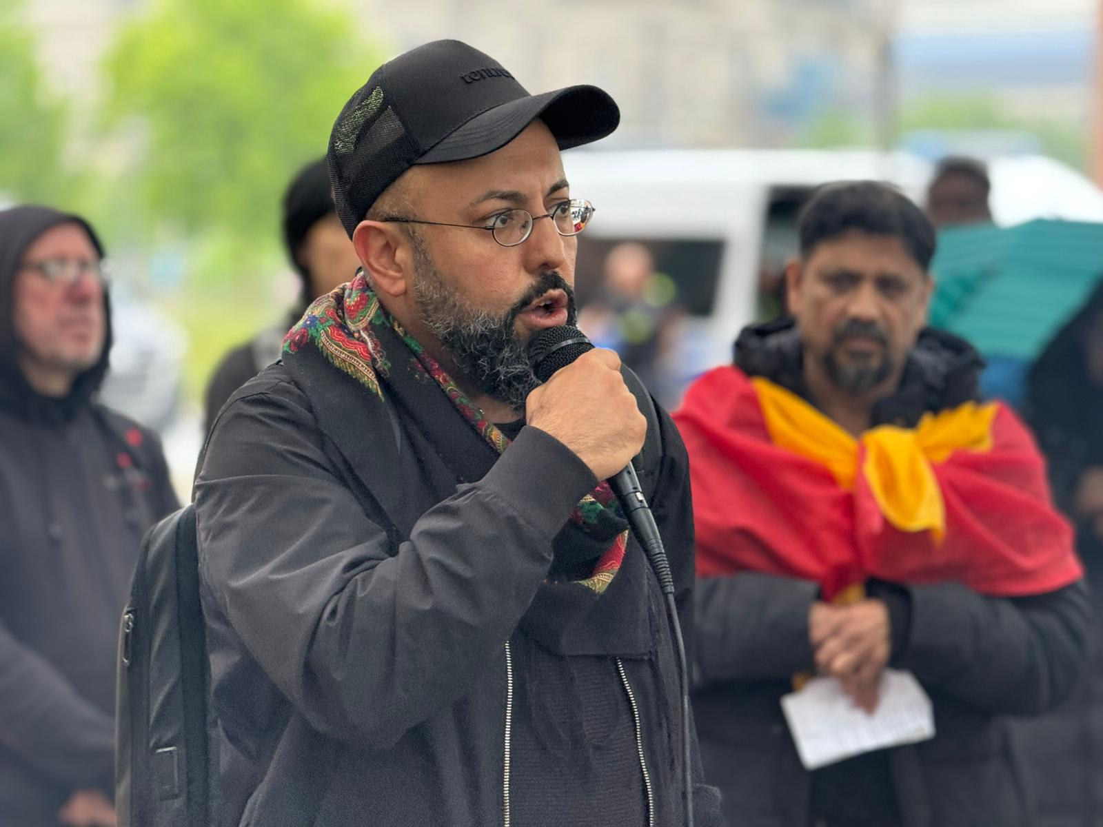 தொடர்ந்து குர்த் சமூக பிரதிநிதிகளும் மனித உரிமைப் செயற்பாட்டாளர்களும் தங்களது உரைகளை நிகழ்த்தினார்கள். இலங்கையில் நடைபெறும் மனித உரிமை மீறல்கள் குறித்து அக்கறை தெரிவித்தனர்.கால நிலை சீராக இல்லாத நிலமையிலும் போராட்டம் உணர்வுபூர்வமாகவும் உற்சாகமாகவும் நடைபெற்றது.