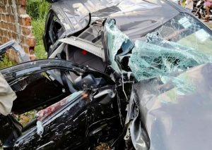 இந்த விபத்தின் போது காரில் பயணித்த நான்கு பேர் காயமடைந்துள்ளதாக பொலிஸார் தெரிவித்தனர்.