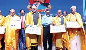 அதன்படி, ஆந்திராவில் உள்ள திராவிட பல்கலைக்கழக முன்னாள் துணைவேந்தர் கே.எஸ்.சலமுக்கு ‘அம்பேத்கர் சுடர்’ விருது, நடிகர் சத்யராஜுக்கு ‘பெரியார் ஒளி’ விருது வழங்கப்பட்டது. அதேபோல, புதுச்சேரி முன்னாள் முதல்வர் வெ.வைத்திலிங்கத்துக்கு ‘காமராசர் கதிர்’ விருது, பவுத்த ஆய்வறிஞர் பா.ஜம்புலிங்கத்துக்கு ‘அயோத்திதாசர் ஆதவன்’ விருது, தமிழ் தேசிய விடுதலை இயக்க பொதுச்செயலாளர் தியாகுவுக்கு ‘மார்க்ஸ் மாமணி’ விருது, தமிழ்நாடு ஜமா அத்துல் உலமா சபை தலைவர் பி.ஏ.காஜா முயீனுத்தீன் பாகவிக்கு ‘காயிதேமில்லத் பிறை’ விருது, யாழ்ப்பாண தமிழறிஞர் அ.சண்முகதாஸுக்கு ‘செம்மொழி ஞாயிறு’ விருது ஆகியவை வழங்கப்பட்டன.