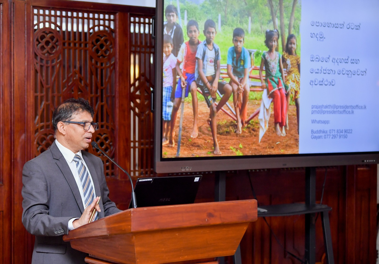 இந்த செயலமர்வில் உரையாற்றிய ஜனாதிபதியின் சிரேஸ்ட மேலதிக செயலாளர் கபில ஜனக பண்டார, தற்போதைய அரசாங்கம் அதன் கொள்கை அறிக்கையின்படி “வளமான நாடு – அழகான வாழ்க்கையை” உருவாக்குவதற்கு மூன்று முக்கிய திட்டங்களை முன்மொழிந்துள்ளதாக சுட்டிக்காட்டினார். டிஜிட்டல் பொருளாதாரம் உள்ளிட்ட பொருளாதார அபிவிருத்தித் திட்டங்களின் ஊடாக குறுகிய கால பொருளாதார வளர்ச்சியை ஏற்படுத்த எதிர்பார்க்கப்படுகிறது. இதன் மூலம் பெறப்படும் நன்மைகளை நாட்டின் அனைத்து மக்களுக்கும் நியாயமாக விநியோகித்து அதன் மூலம் சமூகத்தை வலுப்படுத்தும் நோக்கில் “பிரஜாசக்தி” திட்டம் செயல்படுத்தப்படுகிறது என்று அவர் கூறினார்.