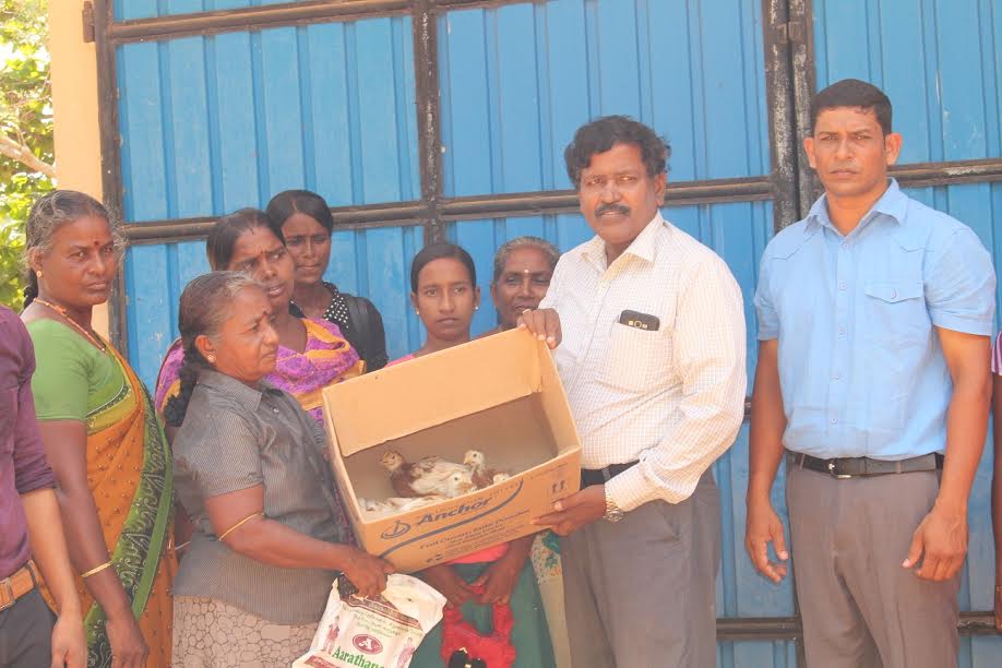 தலா 4225 உரூபாய் பெறுதியிலான இவ்வுடைமை ஊக்குவிப்புகளின் முதற்கட்டமானது துணுக்காய் வலயத்தில் 06 குடும்பங்களுக்கும் 2ம் கட்டமாக புதுக்குடியிருப்பு, கரைதுறைப்பற்று பிரதேசங்களில் 25 குடும்பங்களுக்கும் தலா பத்து கோழிகள் வாழ்வாதார ஊக்குவிப்பு உதவியாக ஒரு மாதசூவர் வகை முட்டையிடும் கோழிகள் வழங்கப்பட்டதோடு பயனாளிகளுக்கான விளக்க ஆலோசனைகள் கால்நடை மருத்துவர்களாலும் பணியாளர்களாலும் வழங்கப்பட்டன.