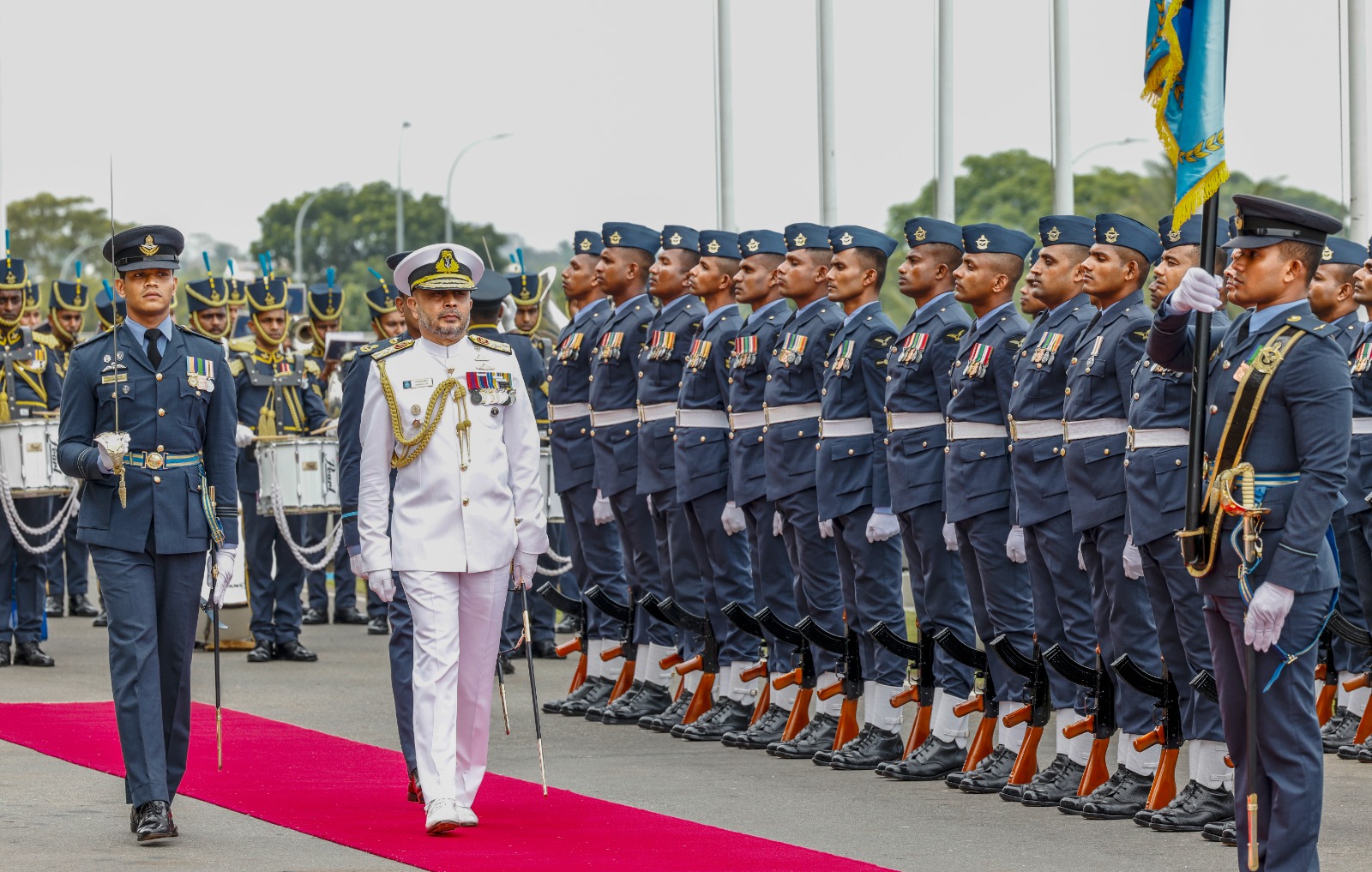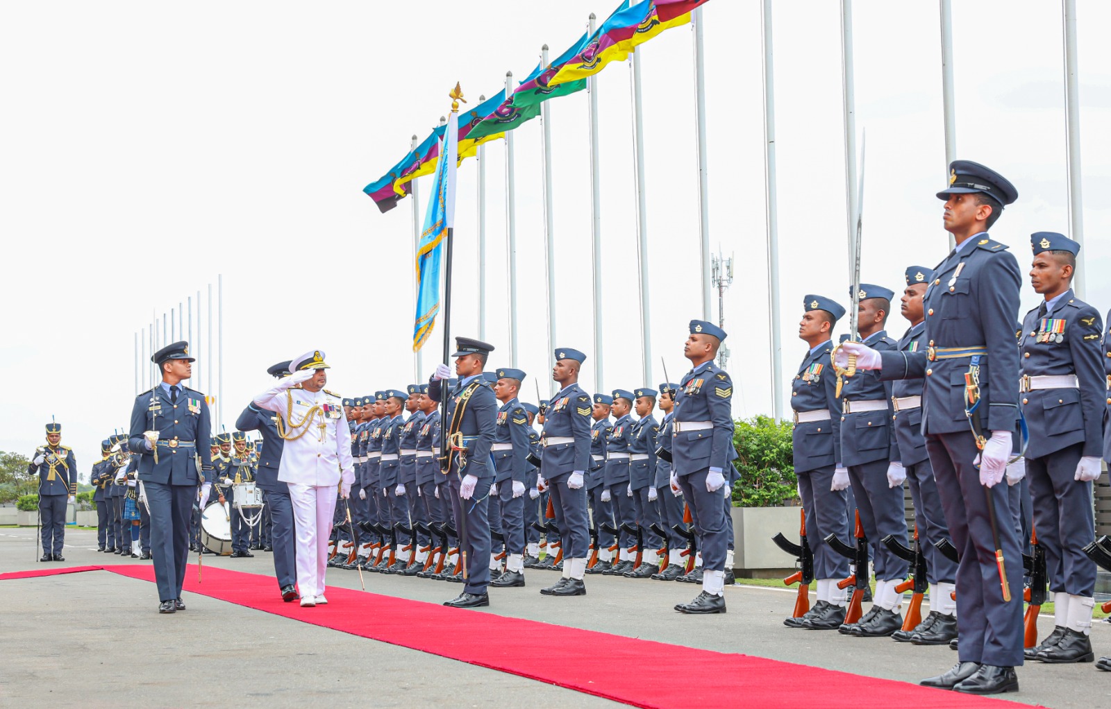 கடற்படை தளபதியை கொழும்பு விமானப்படை தளத்தின் கட்டளை அதிகாரி எயார் கொமடோர் புத்திக பியசிறி வரவேற்றார், மேலும் விமானப்படை வண்ணப் பிரிவால் இராணுவ அணிவகுப்பு மரியாதையும் செலுத்தப்பட்டது.