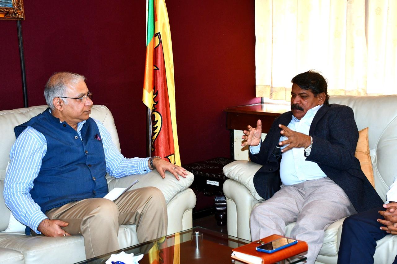 கொழும்பு, ஜூலை 14, 2025 – கடற்றொழில், நீரியல் மற்றும் கடல் வளங்கள் அமைச்சர் இராமலிங்கம் சந்திரசேகருக்கும் இலங்கைக்கான இந்திய உயர்ஸ்தானிகர் சந்தோஷ் ஜா அவர்களுக்கும் இடையிலான முக்கிய சந்திப்பு திங்கட்கிழமை (14) கடற்றொழில் அமைச்சில் நடைபெற்றது. இச்சந்திப்பில் மீனவர் நலன், கடல்வள பாதுகாப்பு, கடற்றொழில் துறை அபிவிருத்தி மற்றும் இருதரப்பு ஒத்துழைப்புக்கள் குறித்து விரிவாகக் கலந்துரையாடப்பட்டது.