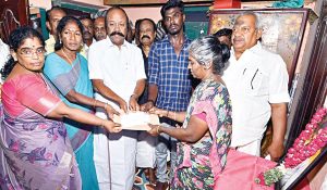 மேலும் அஜித் குமார் குடும்பத்துக்கு அரசு இழப்பீடு வழங்க வேண்டுமென உயர் நீதிமன்றமும் உத்தரவிட்டது. இந்நிலையில் நேற்று மீண்டும் அஜித்குமார் வீட்டுக்கு அமைச்சர் கே.ஆர்.பெரியகருப்பன், மாவட்ட ஆட்சியர் கா.பொற்கொடி ஆகியோர் வந்தனர். பின்னர் அமைச்சர் ரூ.7.50 லட்சத்துக்கான காசோ லையை அரசு சார்பில் அஜித்குமார் குடும்பத்துக்கு வழங்கினார்.